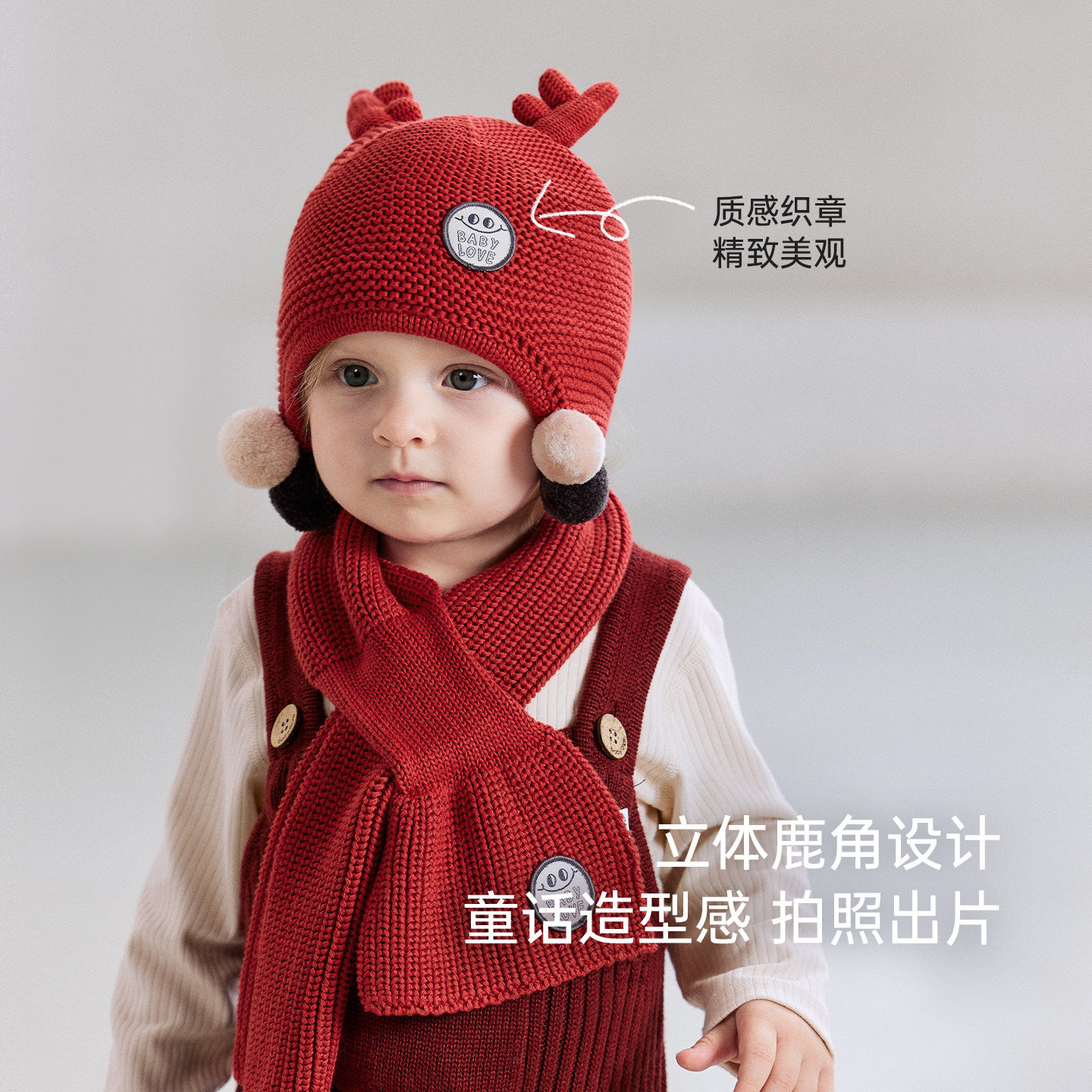 外层100%天然棉线高精密织立体鹿角可爱洋溢