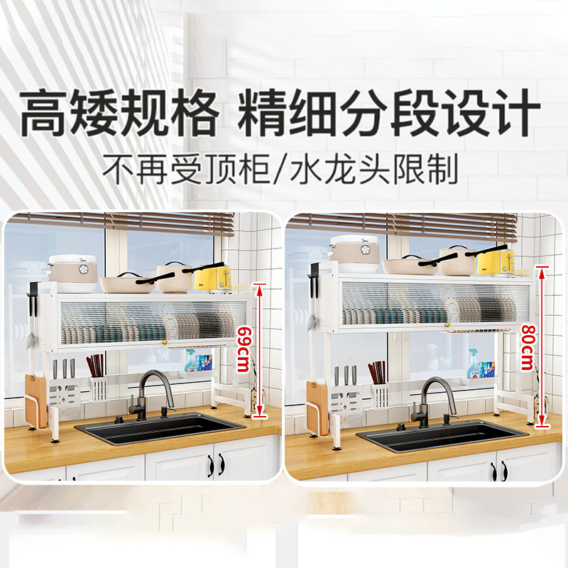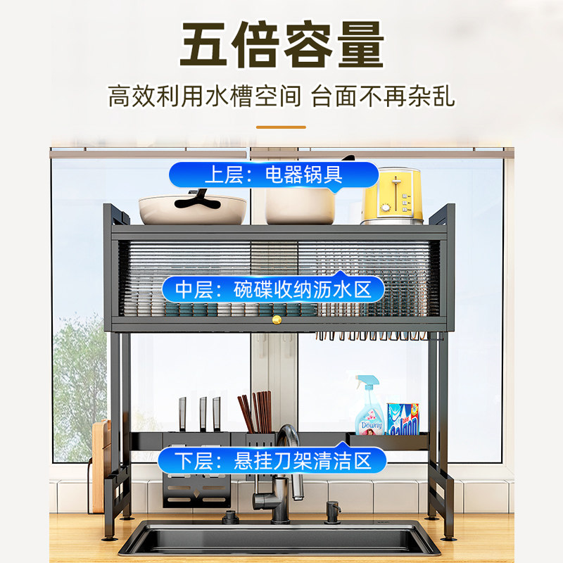 厨房水槽置物架家用碗碟收纳洗碗槽水池收纳防尘碗柜多功能沥水架