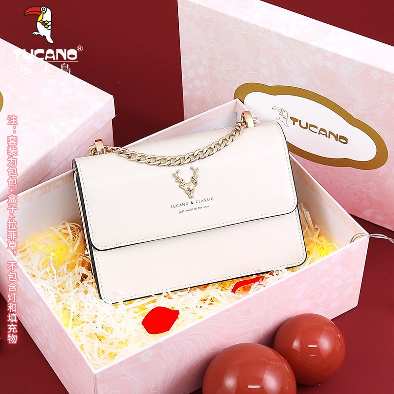 啄木鸟真皮包包2025新款送女友实用高级质感链条小方包单肩斜挎包