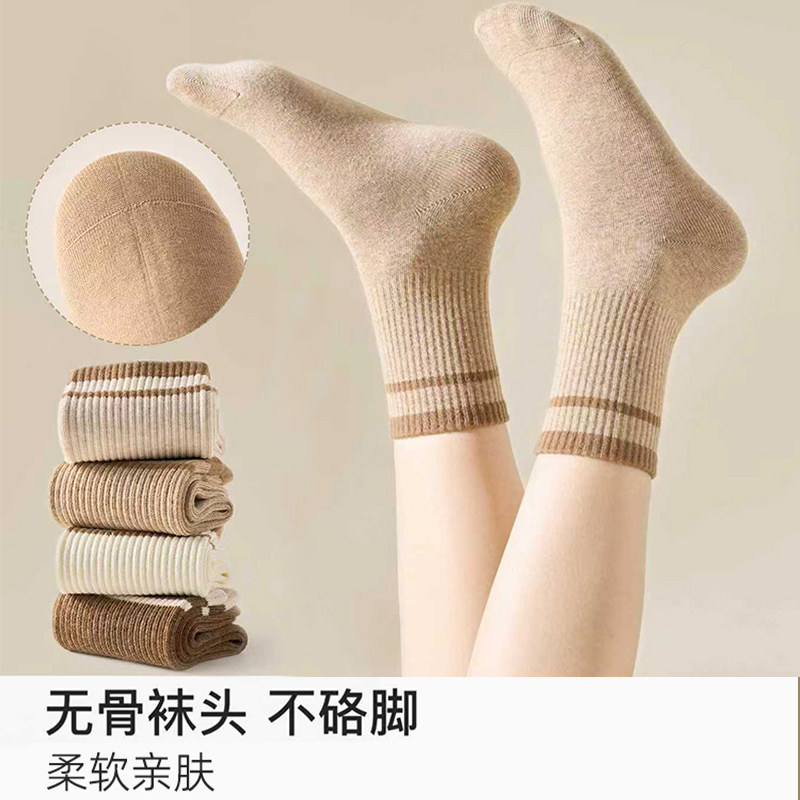 条纹袜子女2025新款爆款秋冬季中筒袜保暖运动美拉德月子堆堆长袜