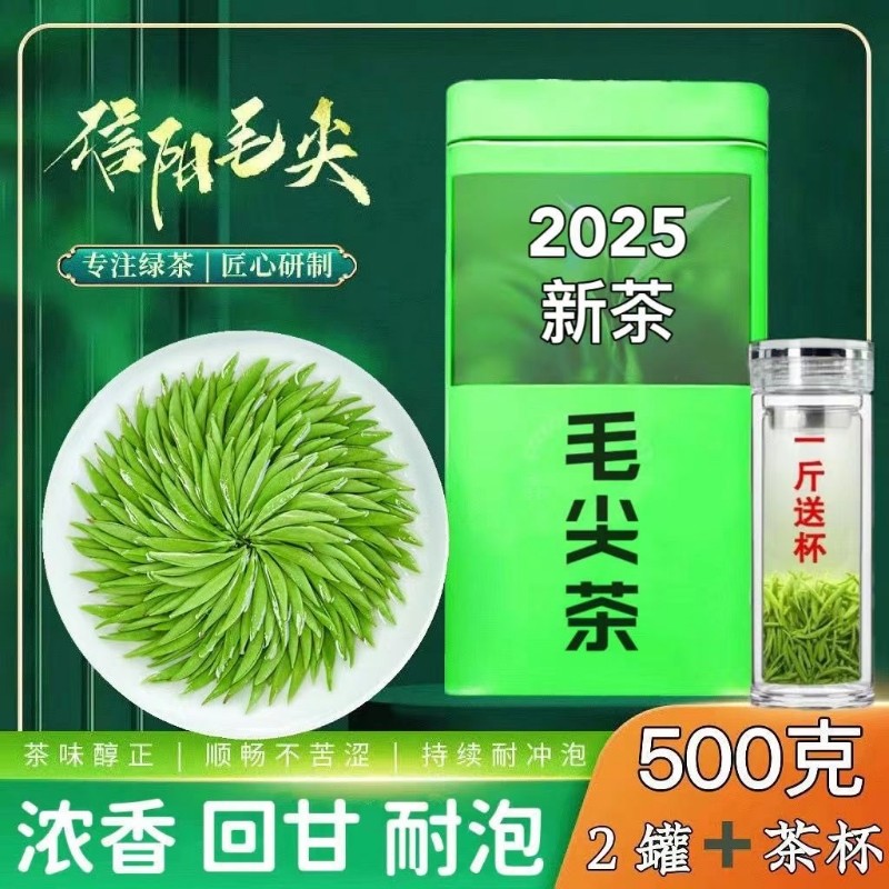 信阳2025新茶茶叶正宗明前特级嫩芽尖绿茶浓香型毛尖罐装春茶产地