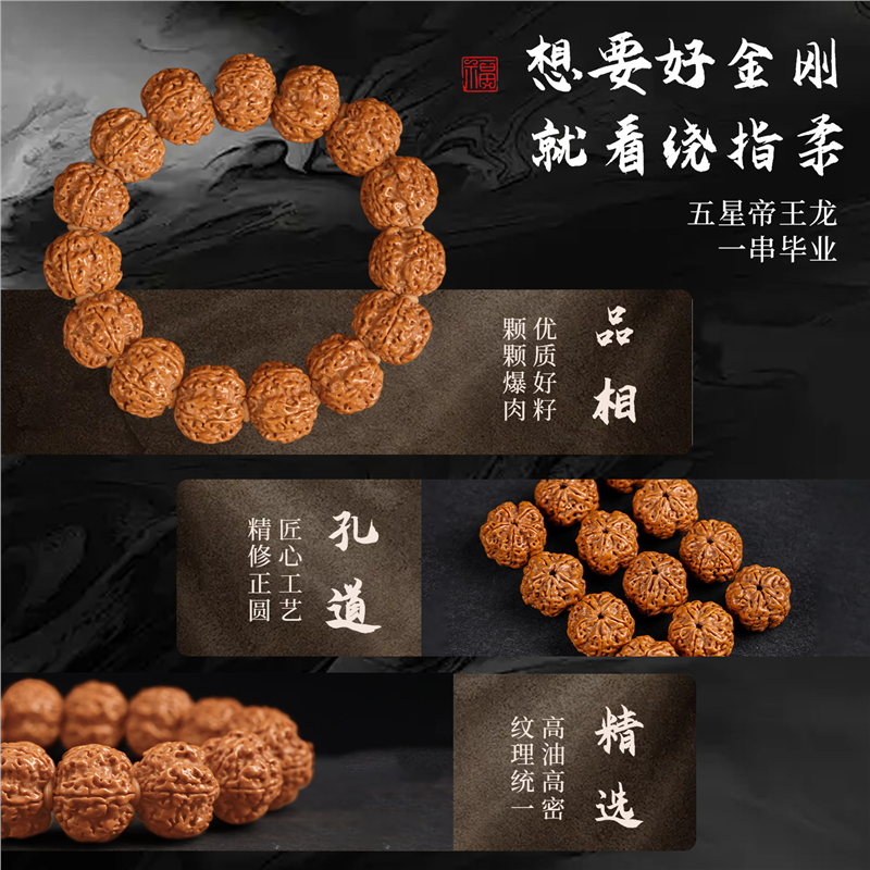 尼泊尔大金刚菩提手串男爆肉龙纹菩提子文玩原籽核桃盘玩佛珠手链
