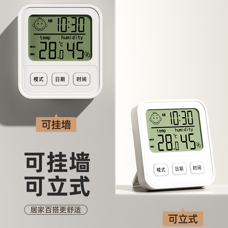 电子数显温湿度计室内家用婴儿时钟壁挂式迷你温度精准闹钟温度表