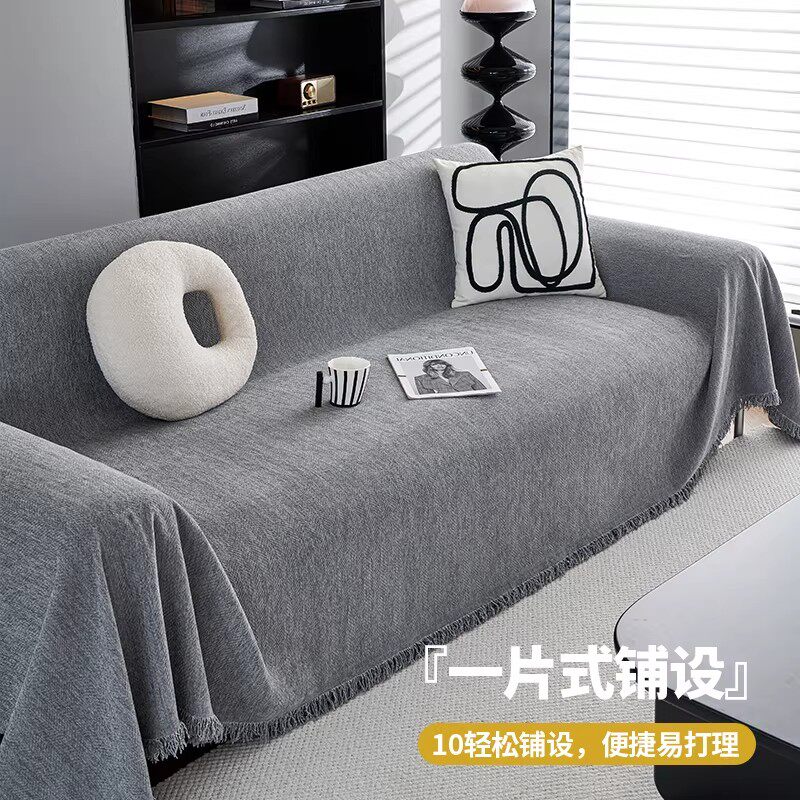 2025新款鱼骨纹雪尼尔沙发巾沙发盖布四季通用全包坐垫套罩盖毯子