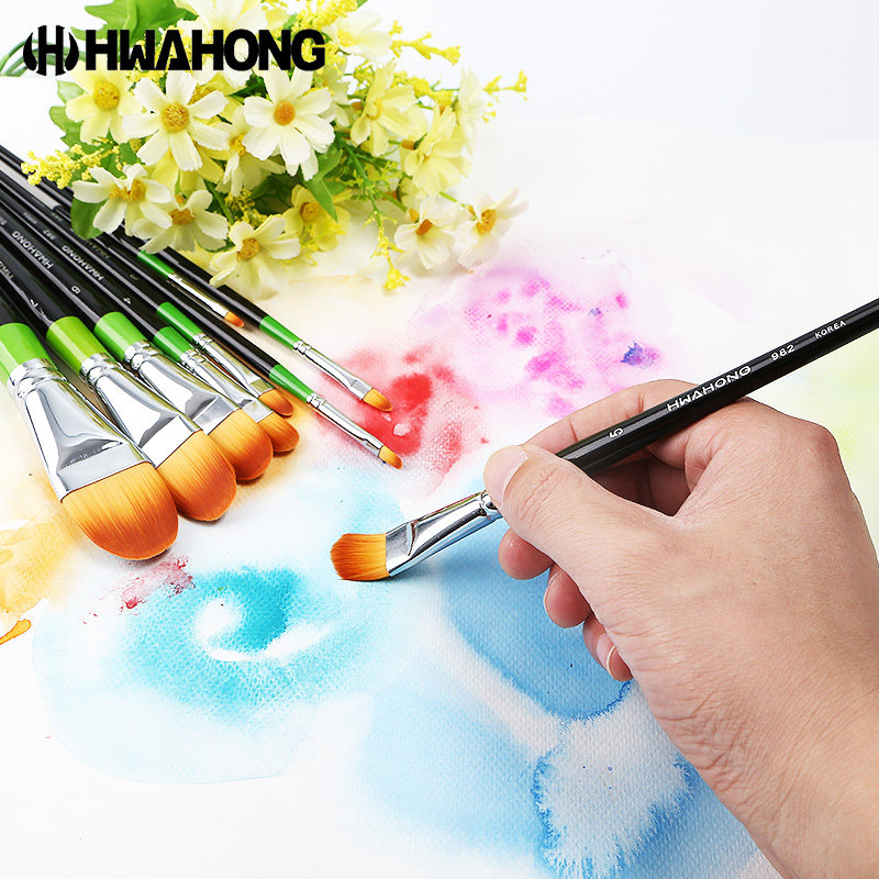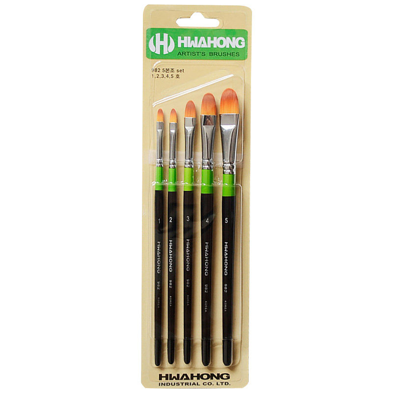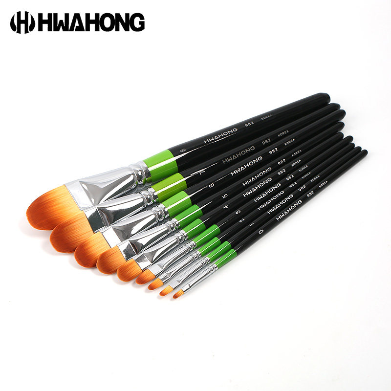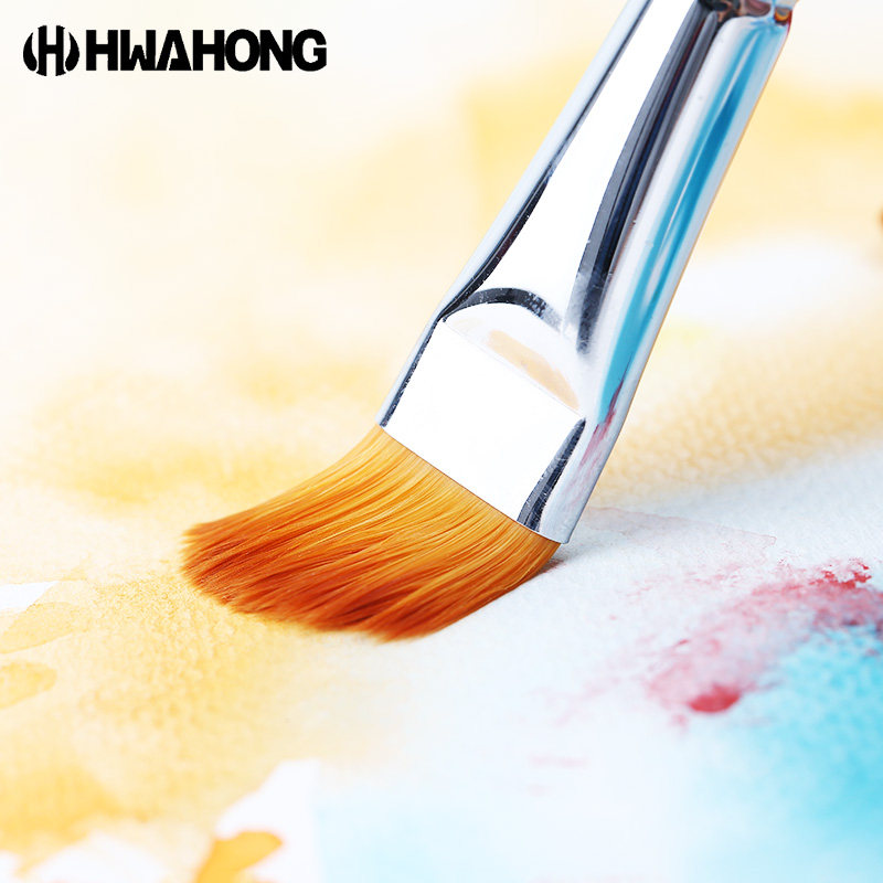 华虹油画笔982系列华虹7号油画笔水粉笔猫舌画笔立构图案笔刷尼龙毛单只遮瑕美术扁头套装 韩国进口Hhwahong