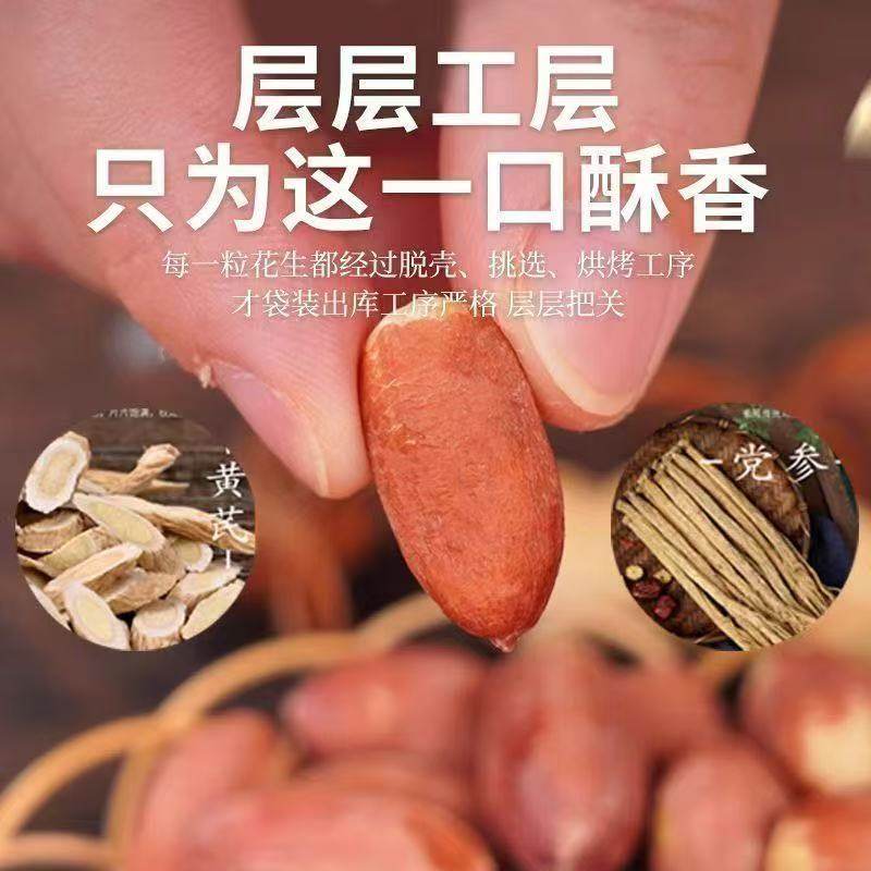 黄芪党参烤花生五香花生零食养胃下酒解馋花生衣多味好吃的油炸