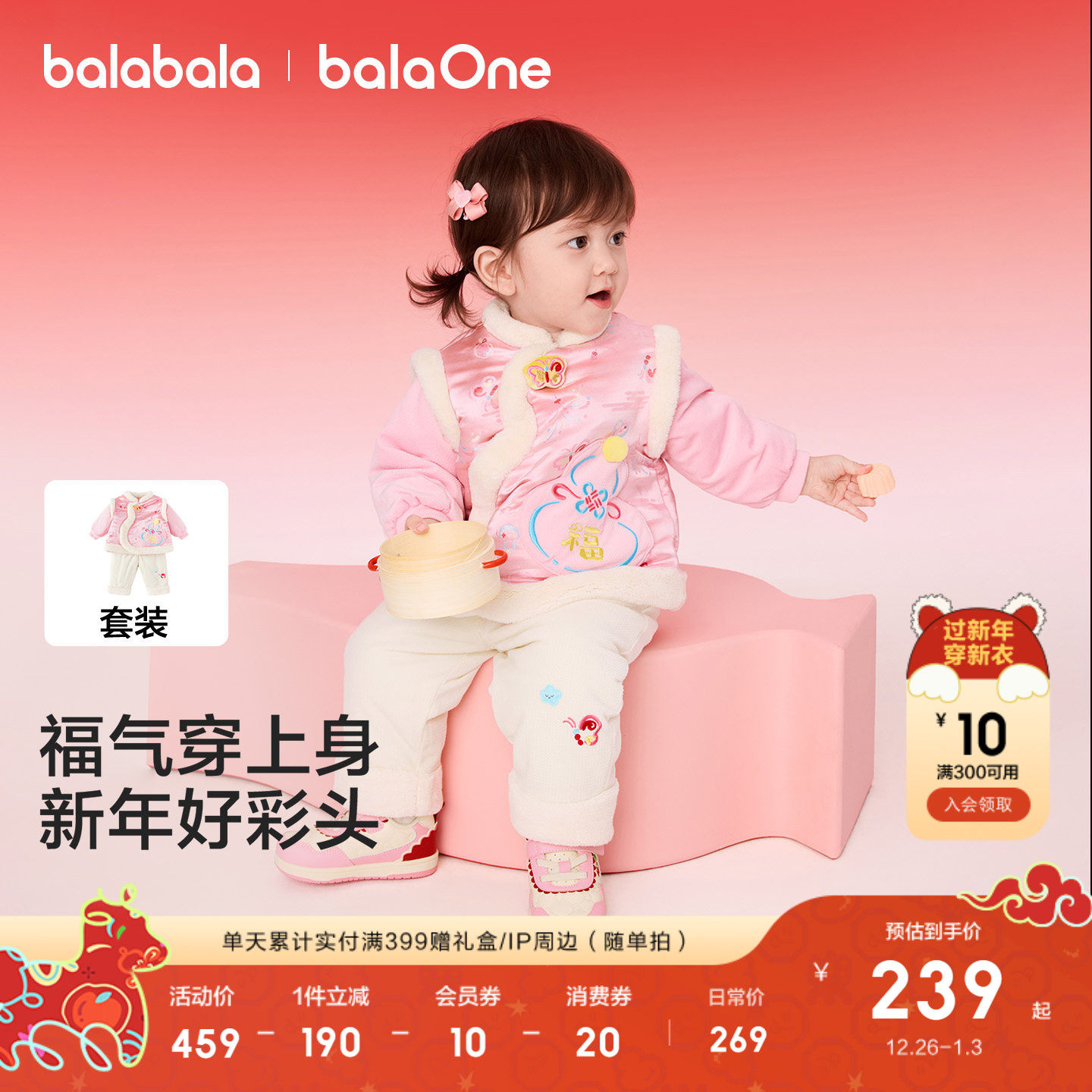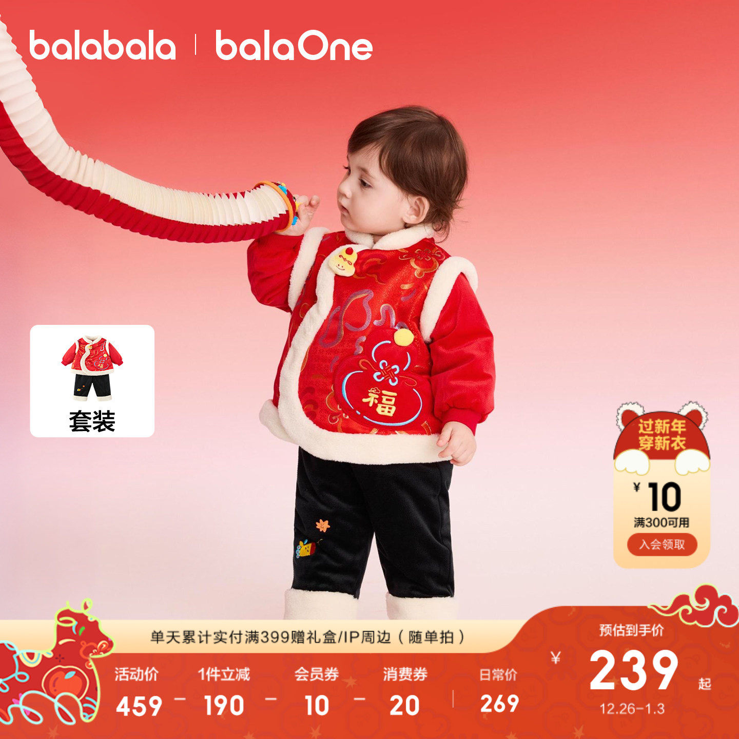 巴拉巴拉童装儿童套装女童宝宝拜年服男童两件套新中式2025新款萌