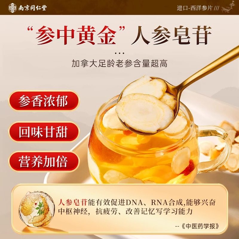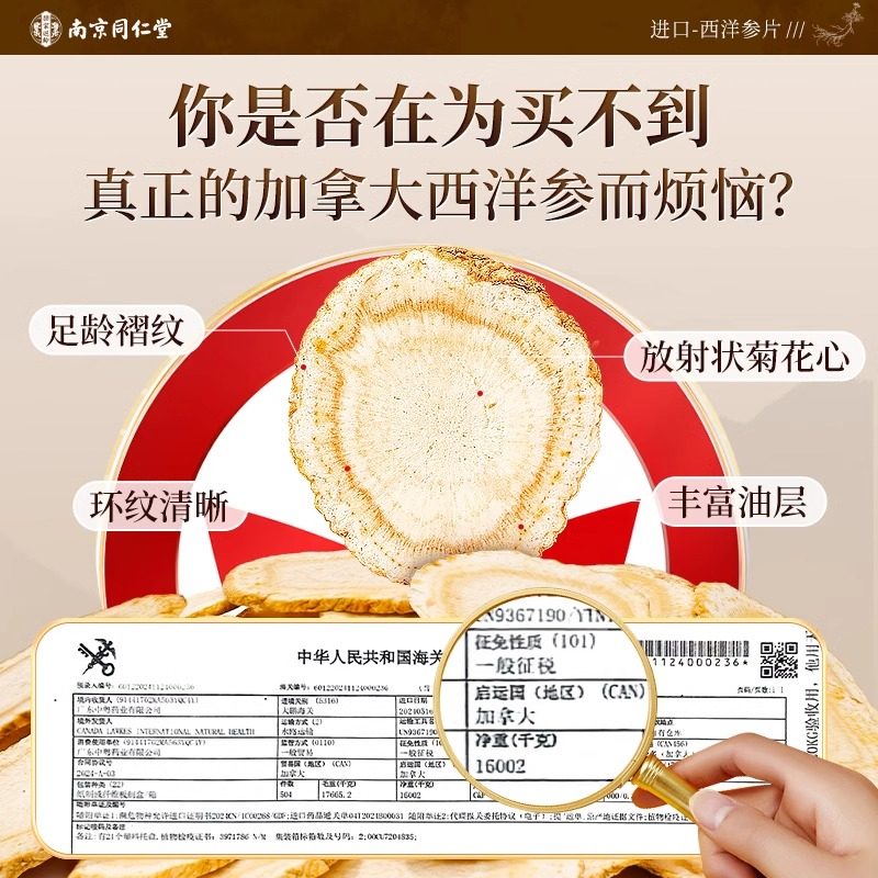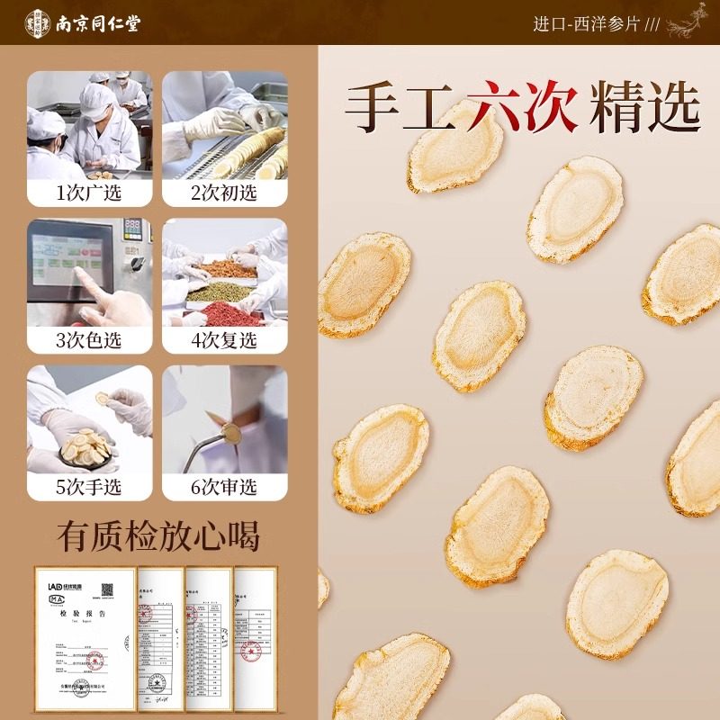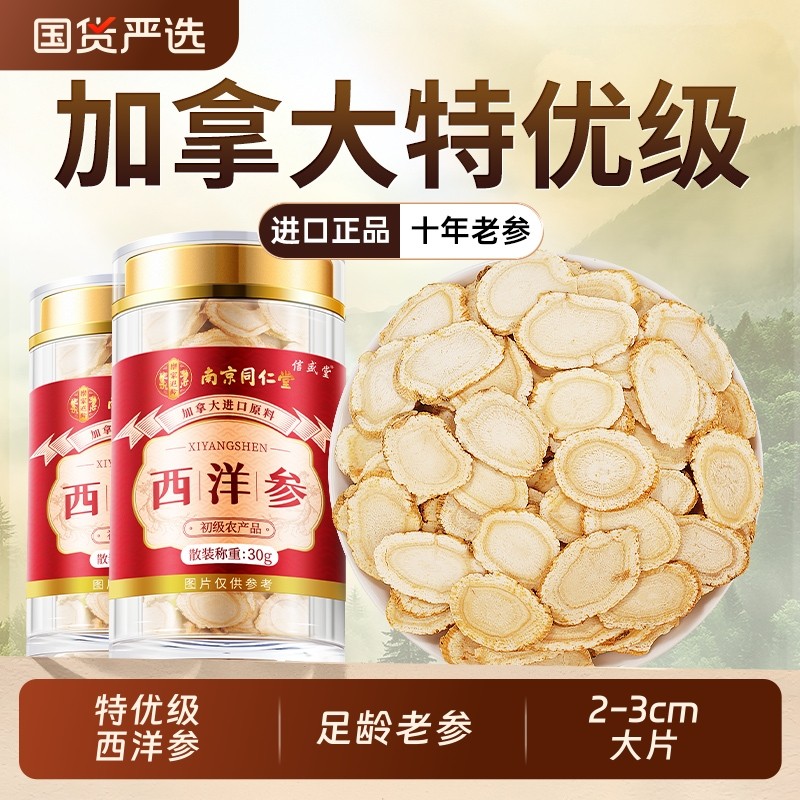 同仁堂西洋参片正品旗舰店加拿特级人参大花旗参切片泡水大片无硫