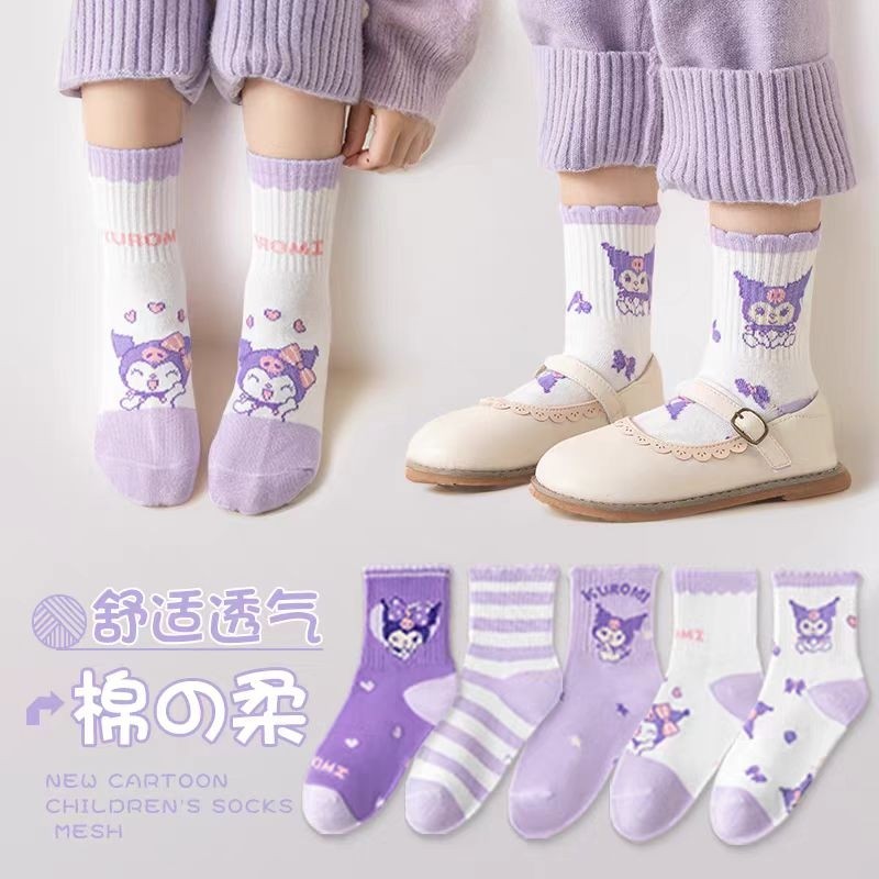 儿童袜子女童春秋季纯棉卡通中筒袜女孩库洛米童袜女可爱宝宝花边