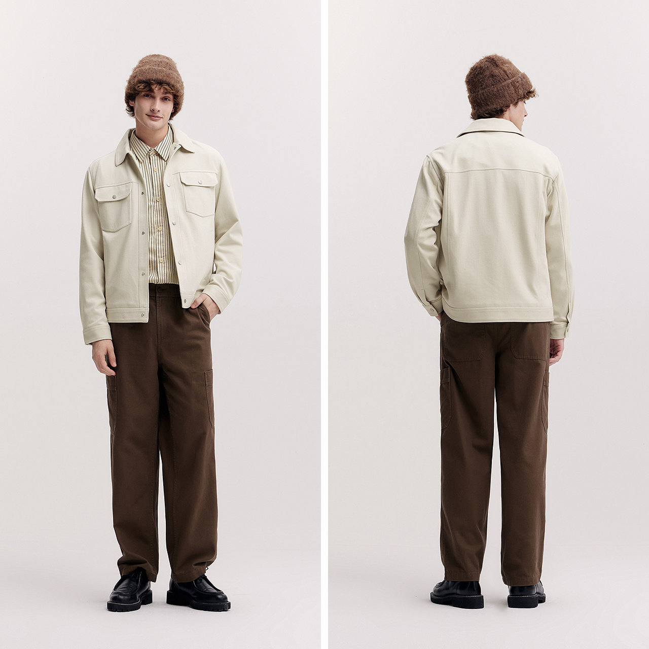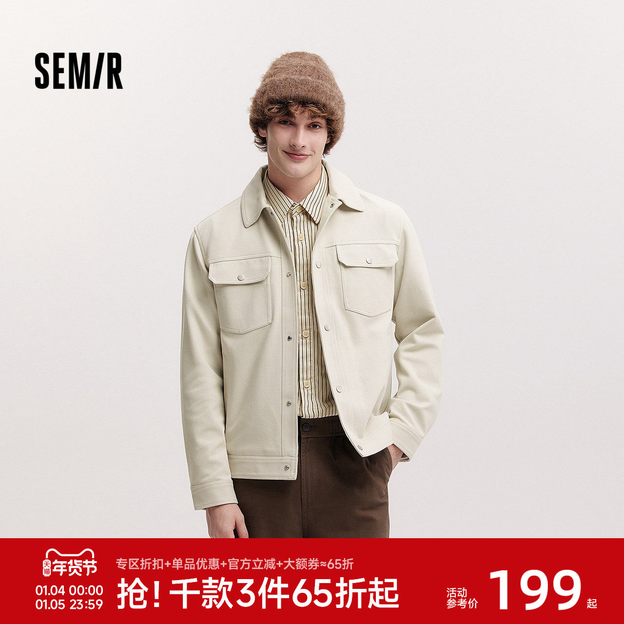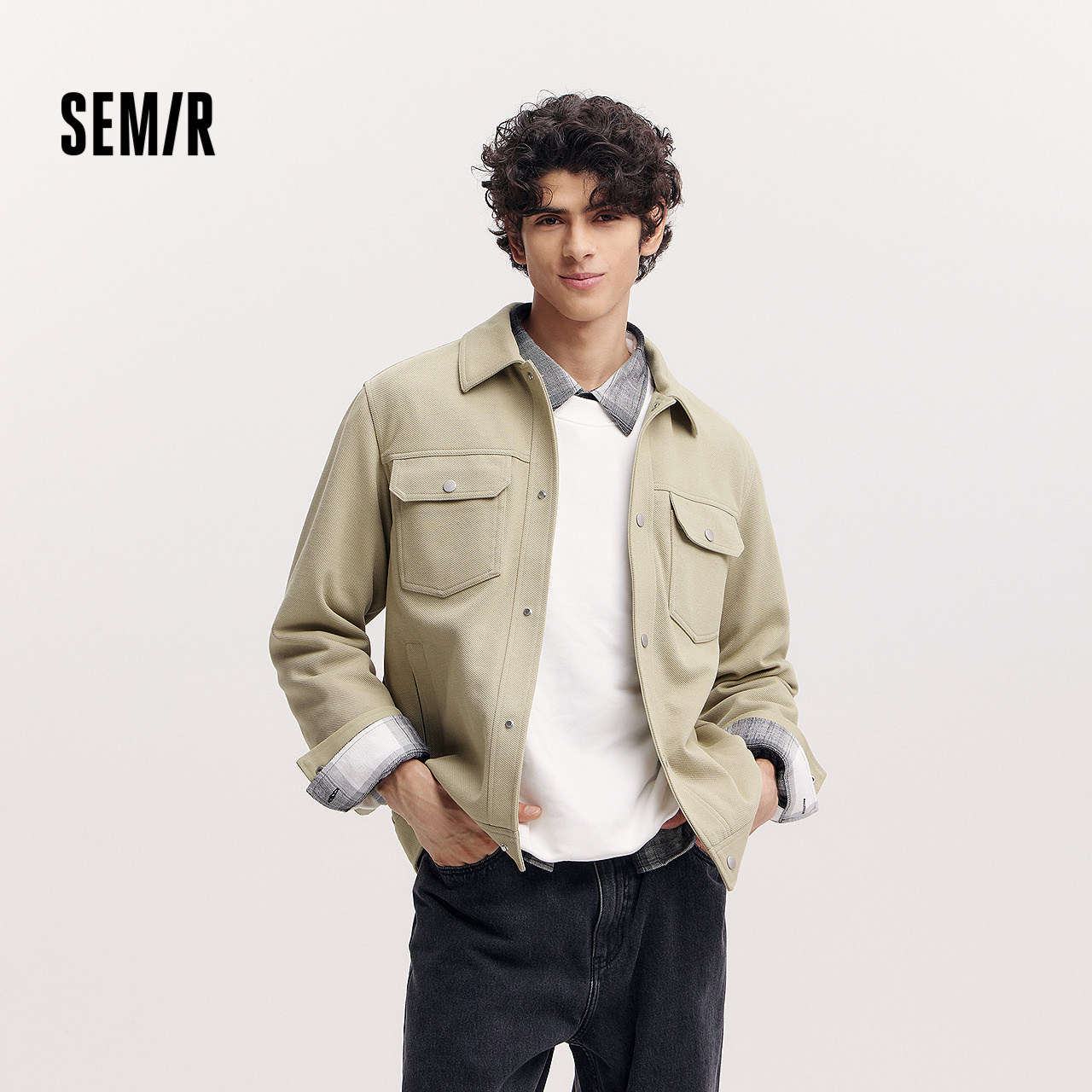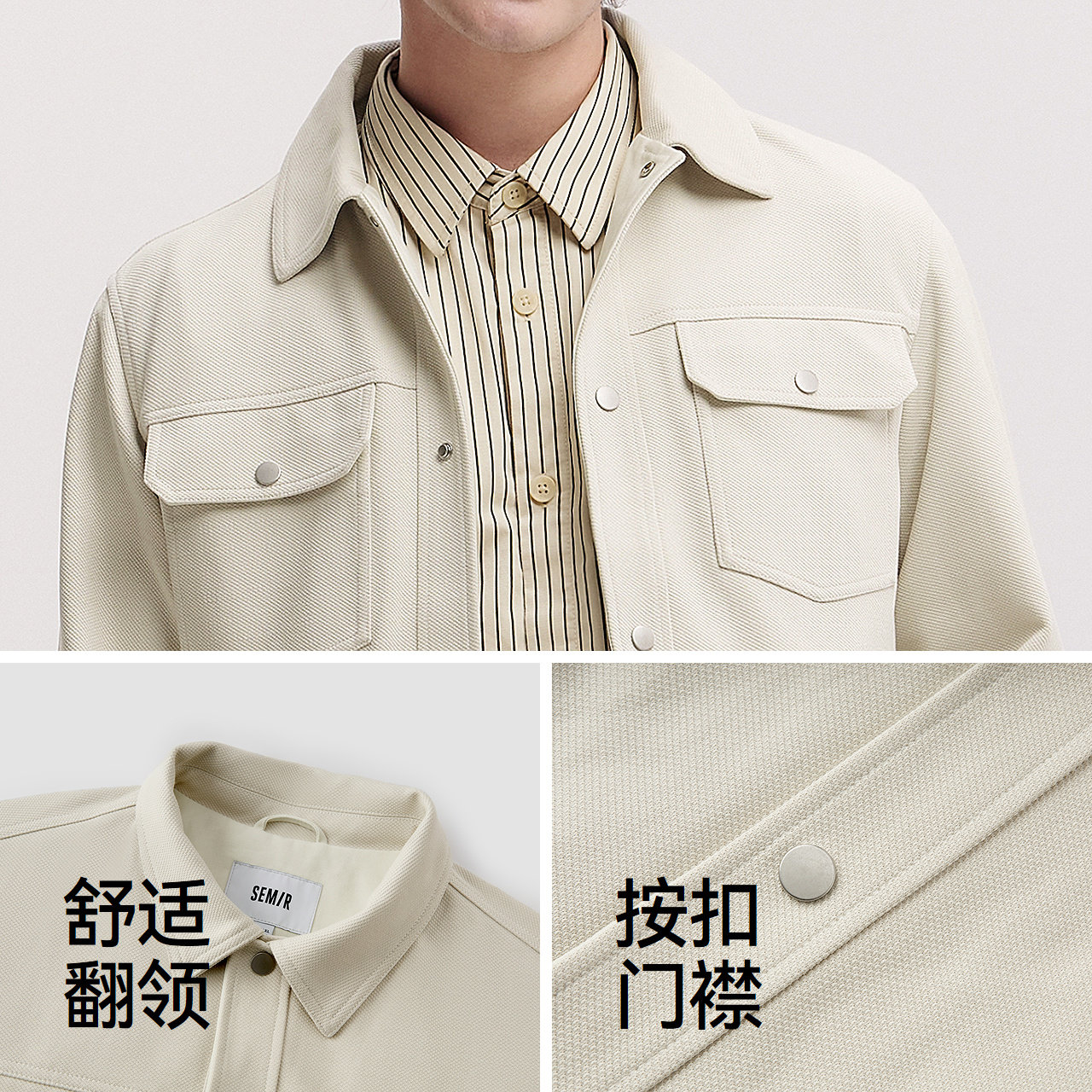 森马夹克男春季纯色工装外套简约百搭经典针织翻领上衣休闲通勤
