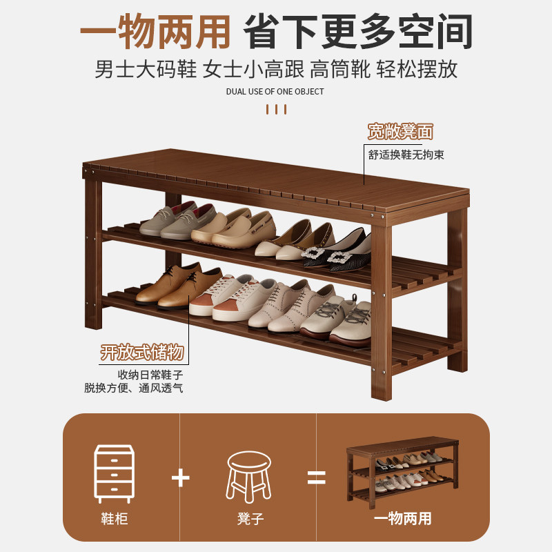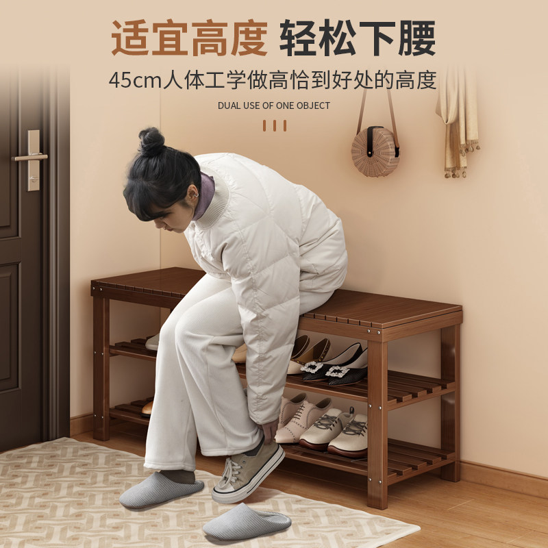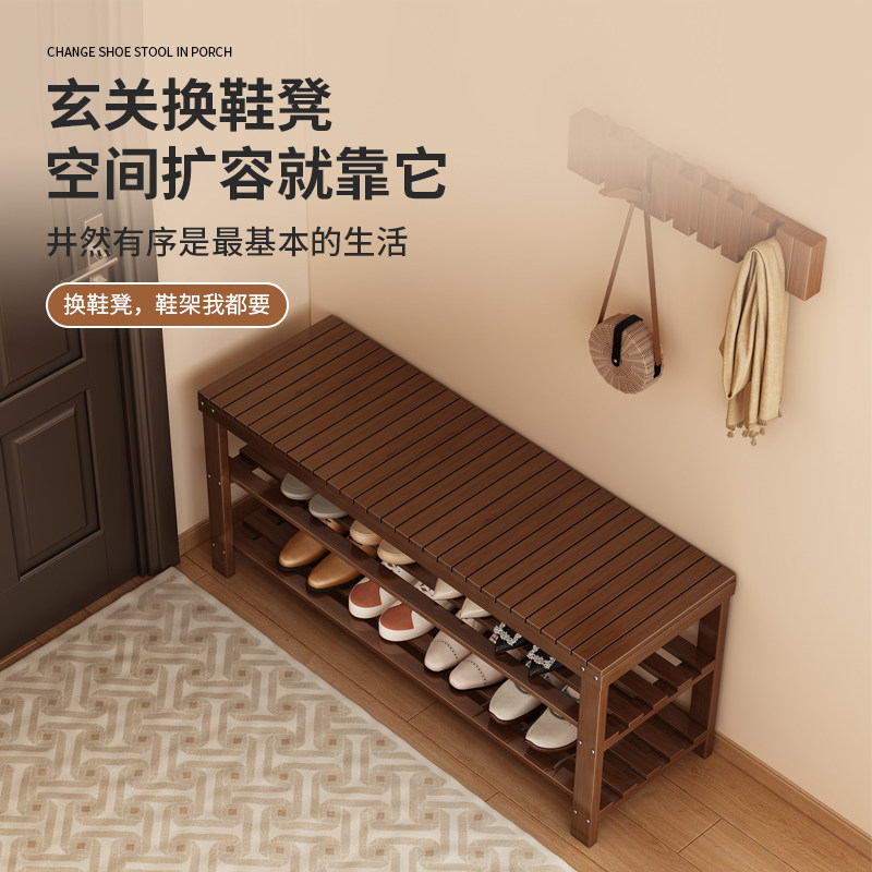 全实木换鞋凳家用入户门口玄关简约鞋柜可坐穿鞋凳子多层收纳鞋架