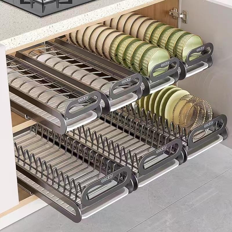 厨房抽拉碗碟架橱柜内拉篮碗架抽屉式放碗盘子收纳沥水置物架台面