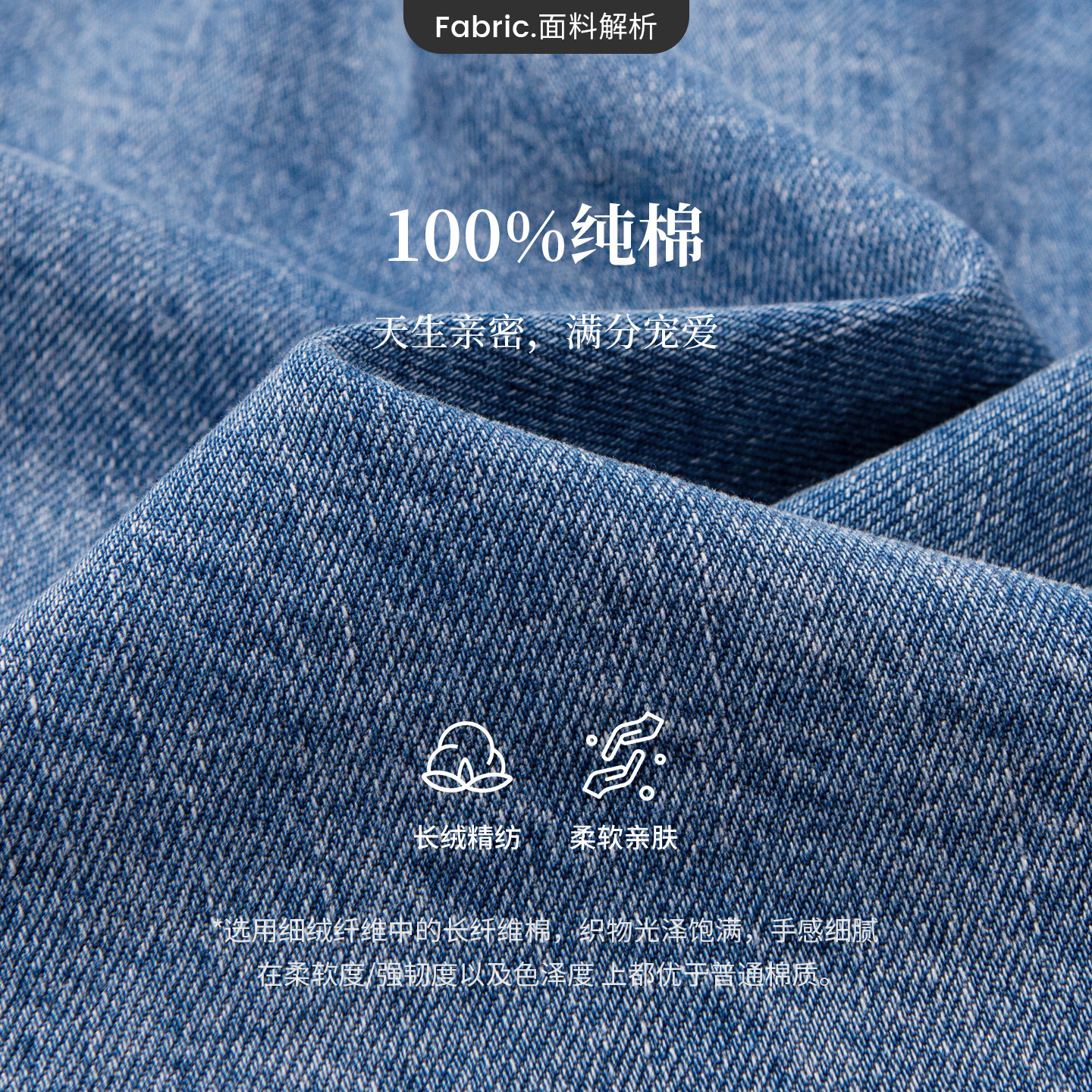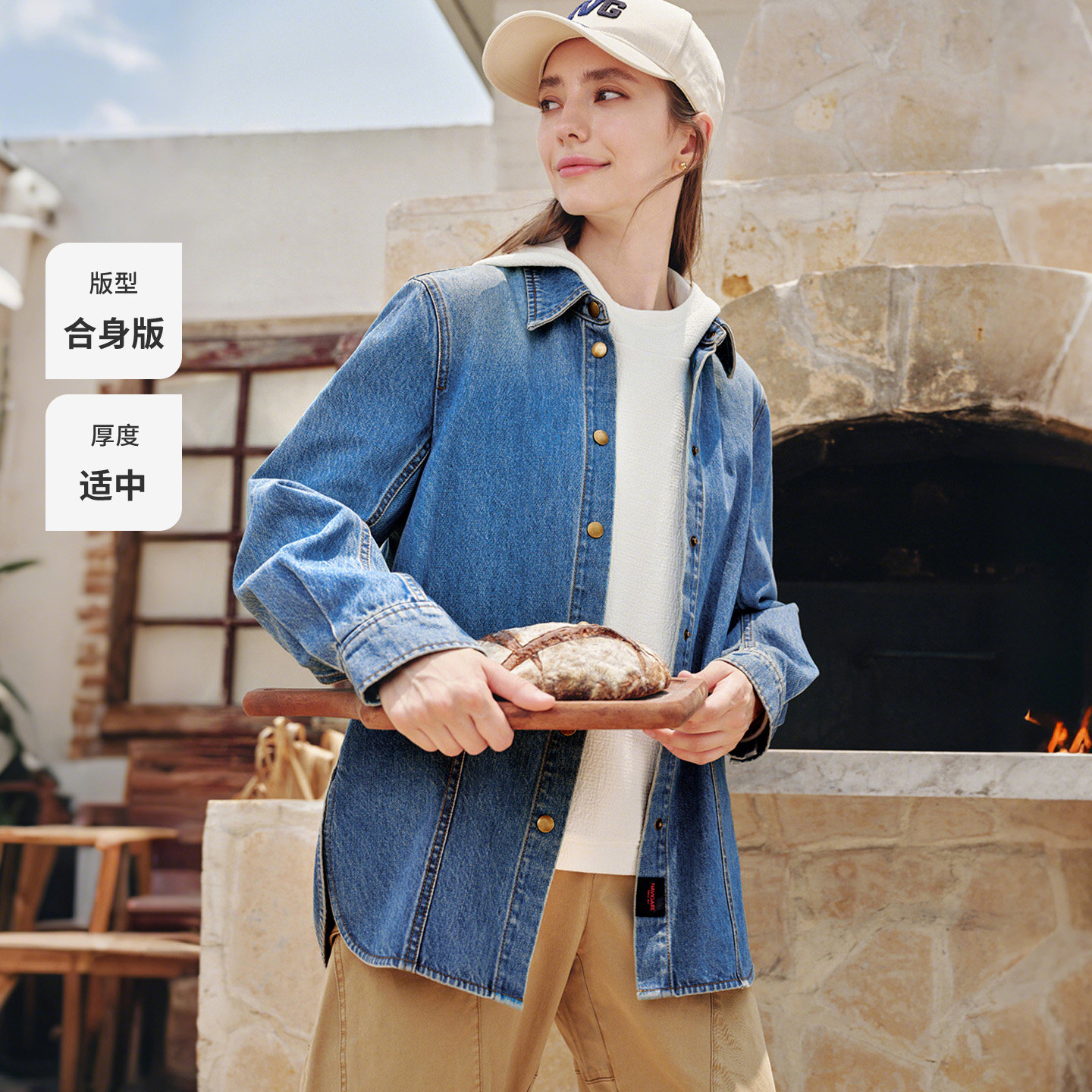 森柔|森马牛仔衬衫女春中长款oversize落肩长袖衣服格纹街头衬衣