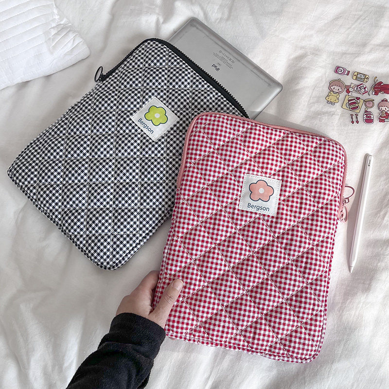 ins风新款格子碎花手拿文件包13寸笔记本电脑包平板11ipad内胆包