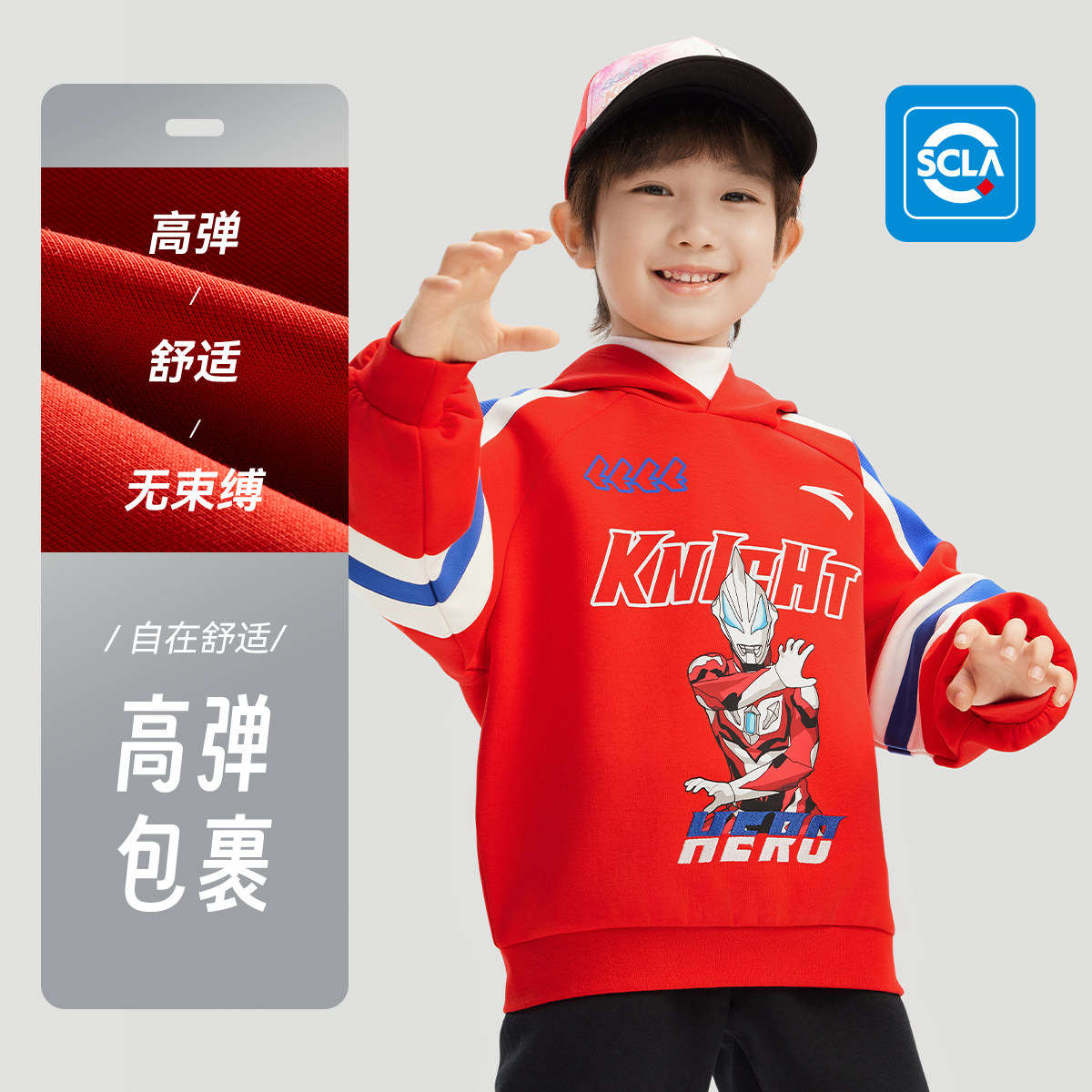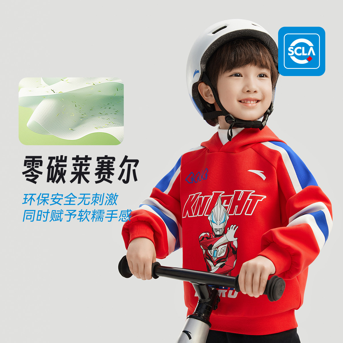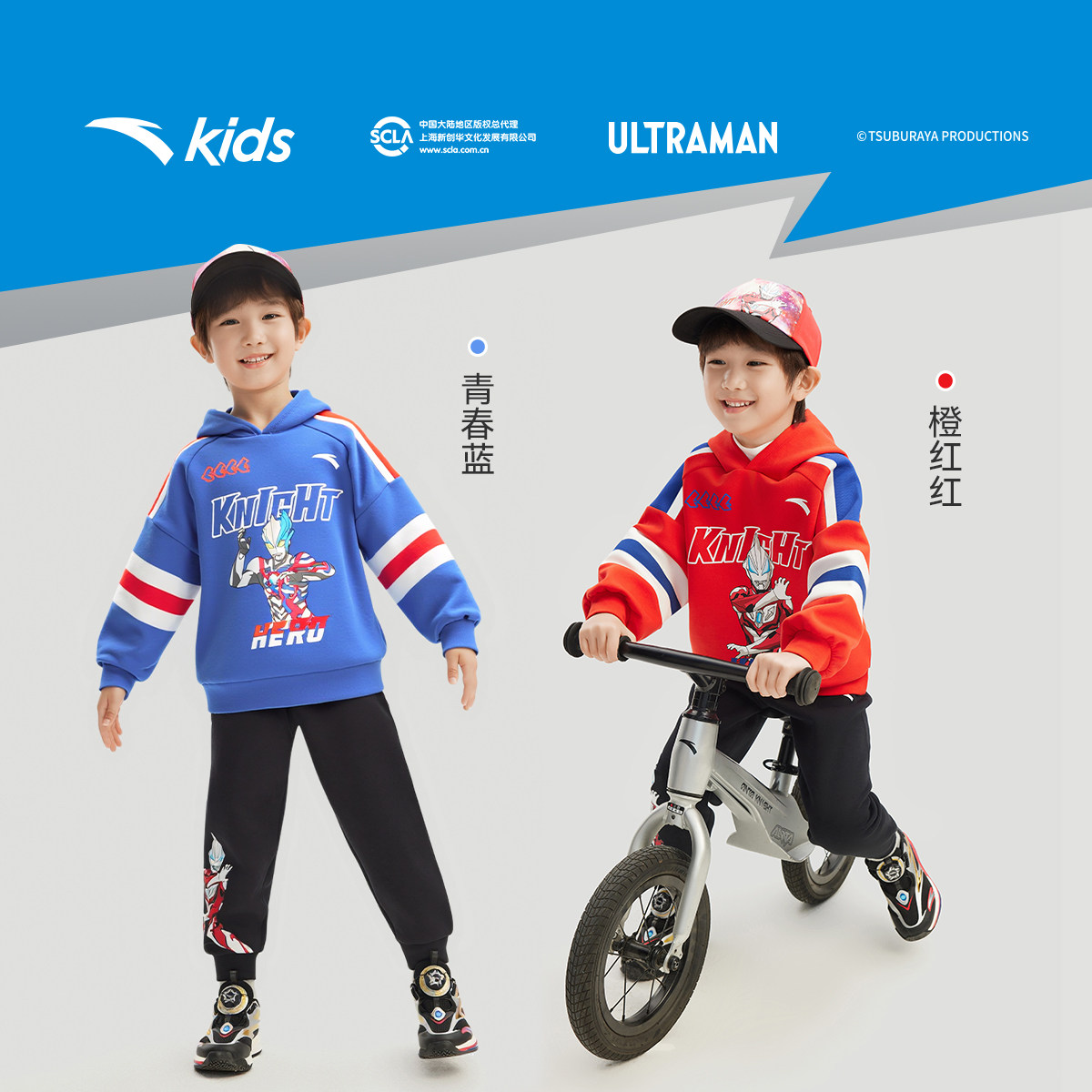 奥特曼IP|安踏儿童卫衣男童宝宝连帽套头衫2025春款小童萌趣上衣