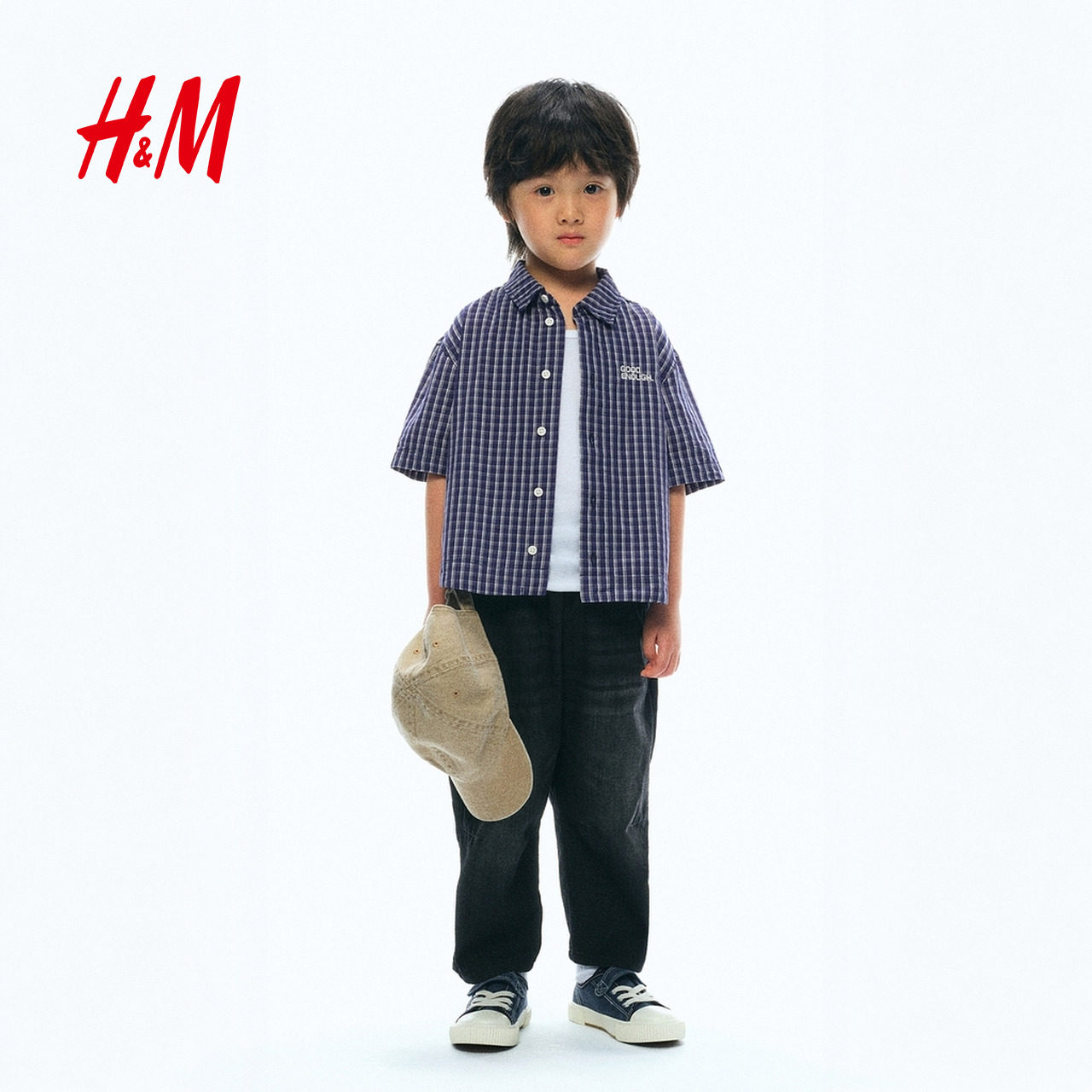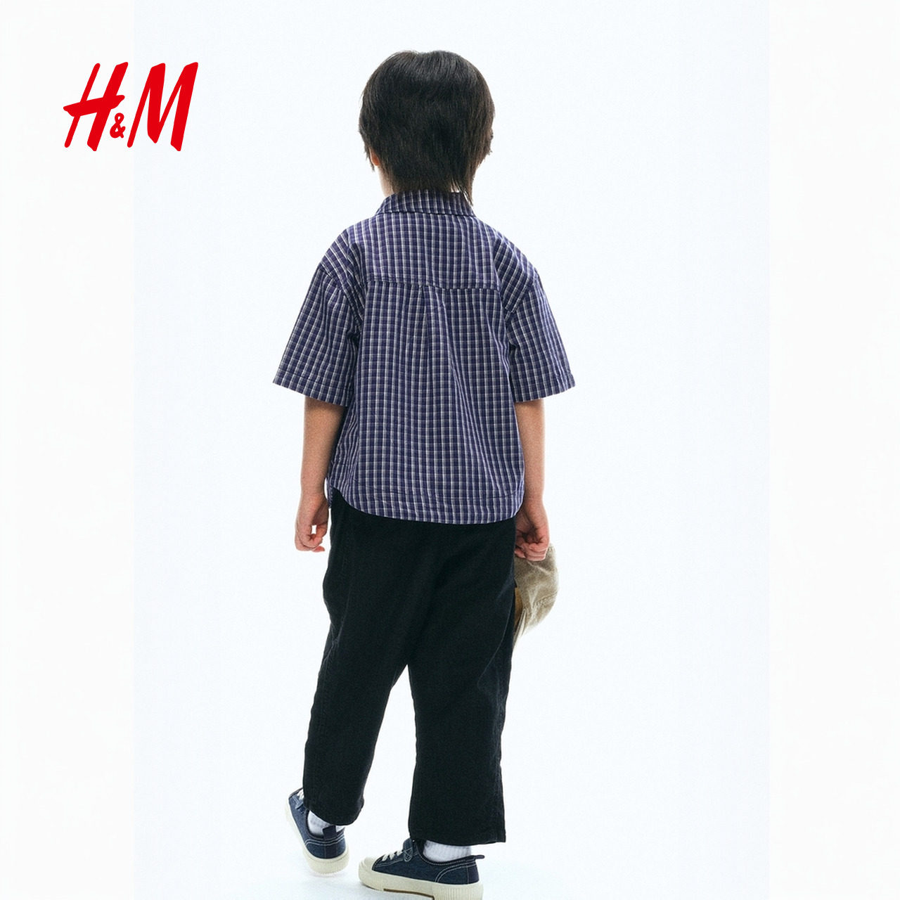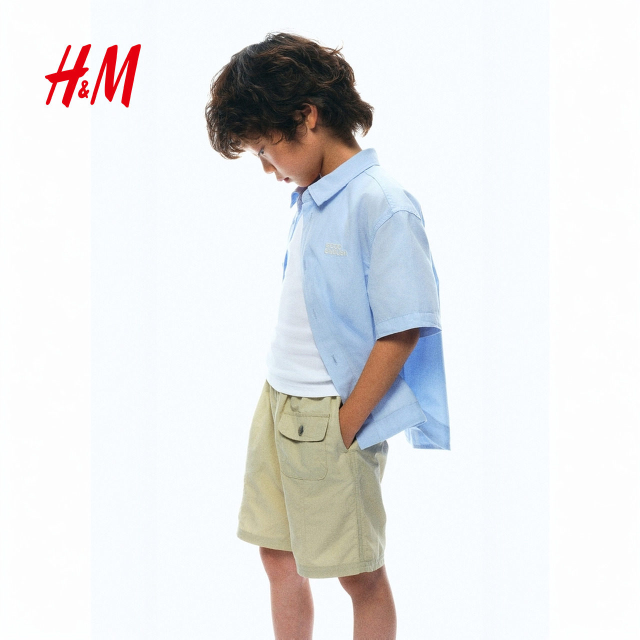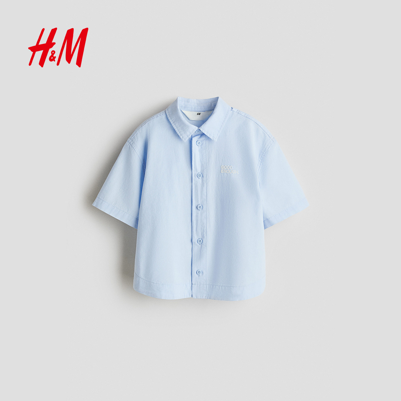 HM童装儿童男童衬衫春季刺绣翻折领设计棉质衬衫1294915