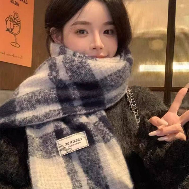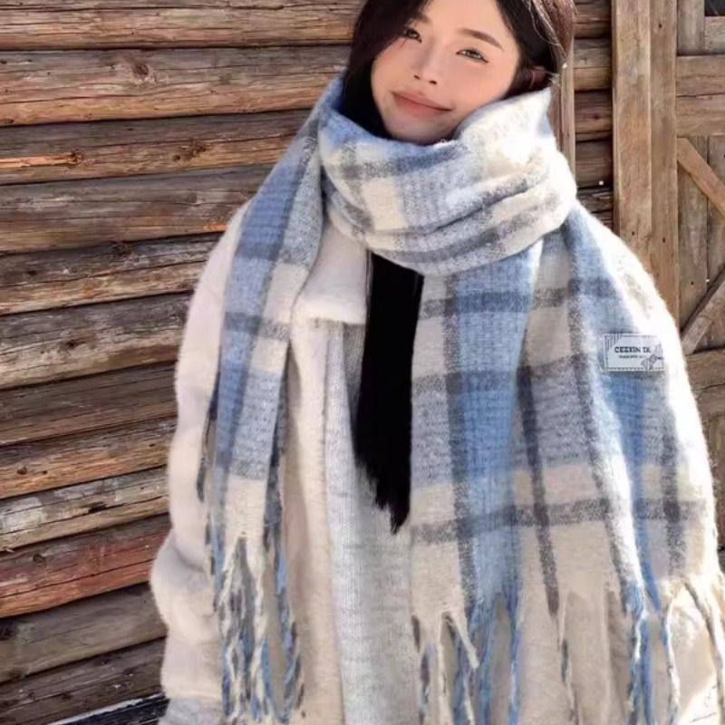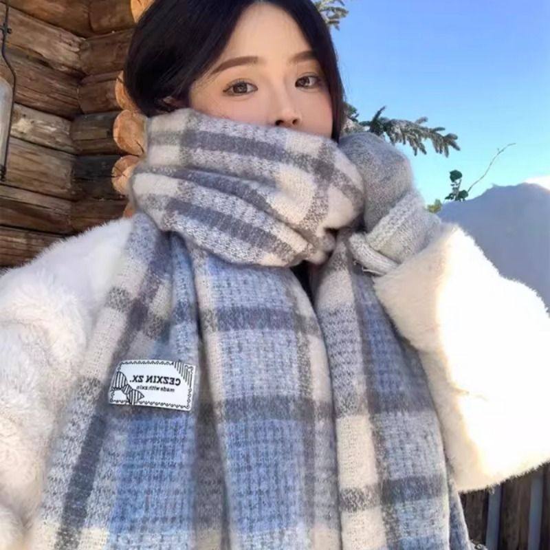 蓝色围巾女款2025新款冬季日韩系氛围感马海毛高级感加厚保暖围脖