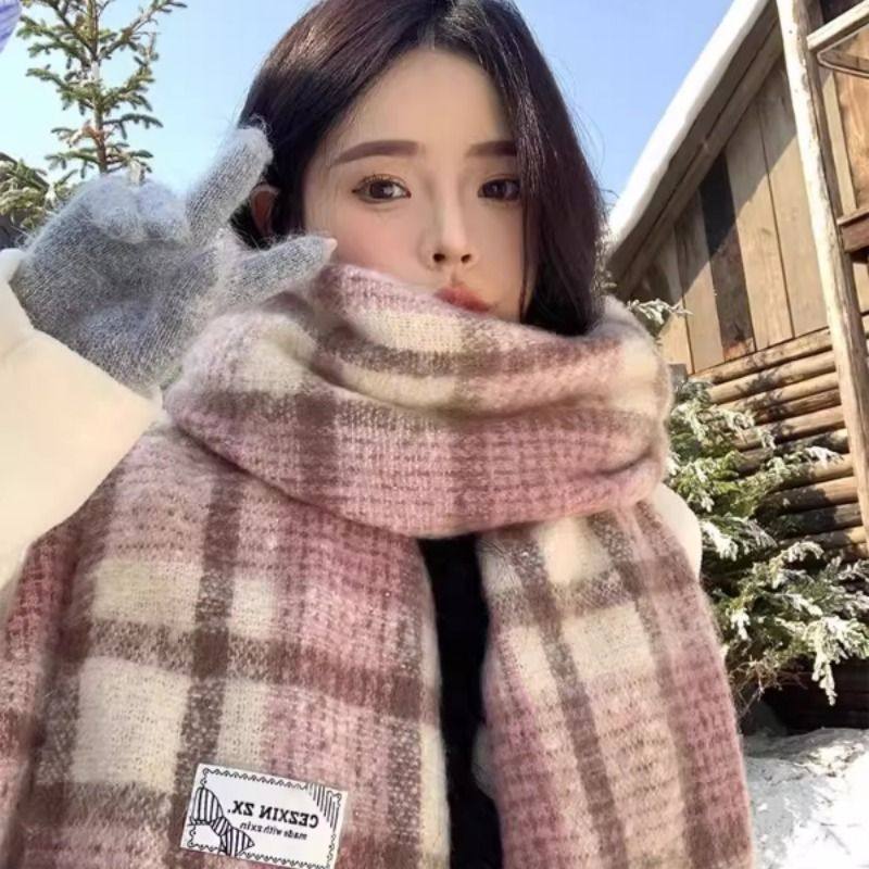 三福格子围巾韩系高级感保暖围脖披肩两用旅游外搭女冬季2025新款