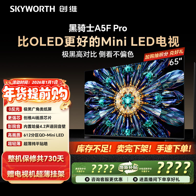 创维A5F Pro 65英寸MiniLED电视机A5D Pro升级款 以旧换新补贴