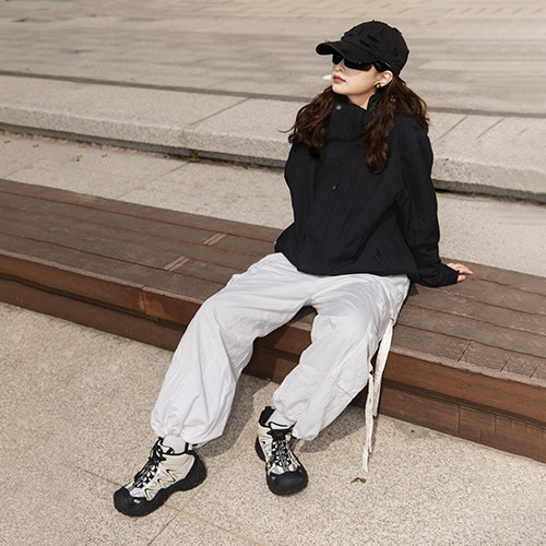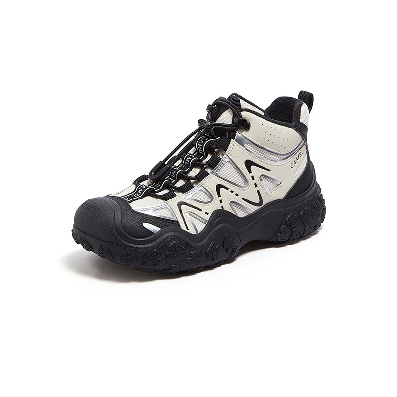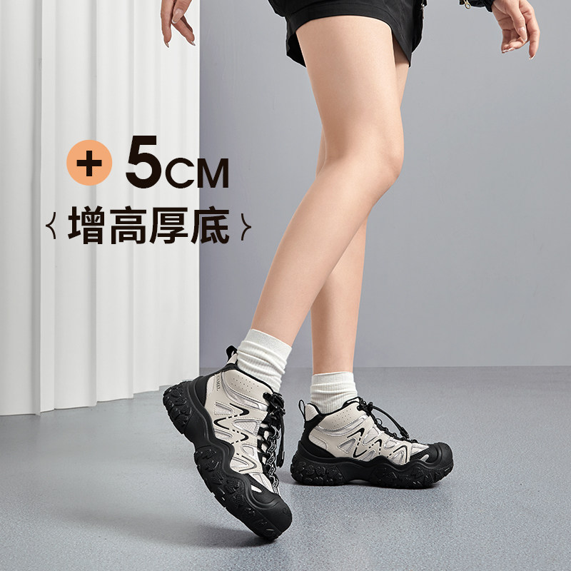 骆驼女鞋2025春季新款户外爬山丑萌鞋运动高帮厚底增高徒步登山鞋