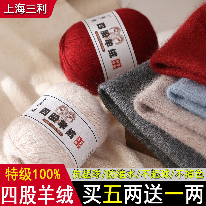 上海三利正品4股羊绒线中粗手编100%纯山羊绒毛线团织毛衣围巾diy
