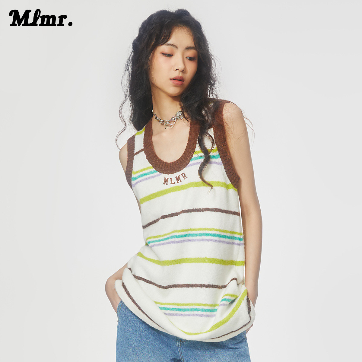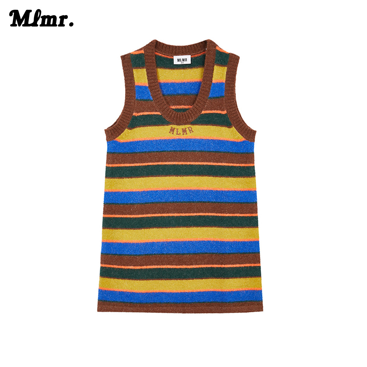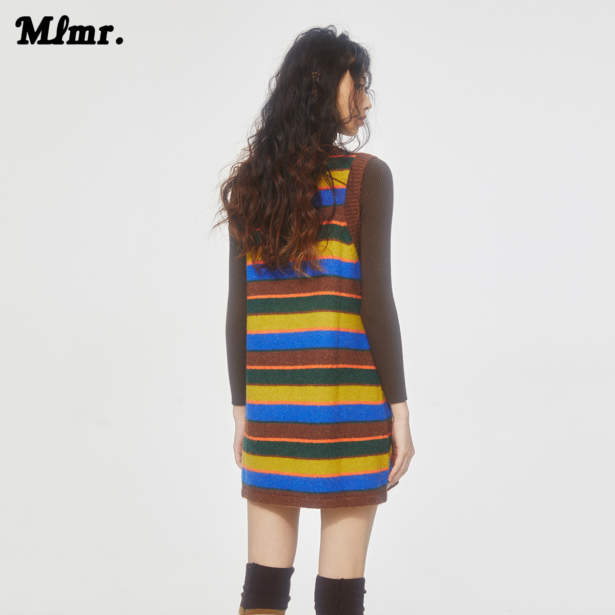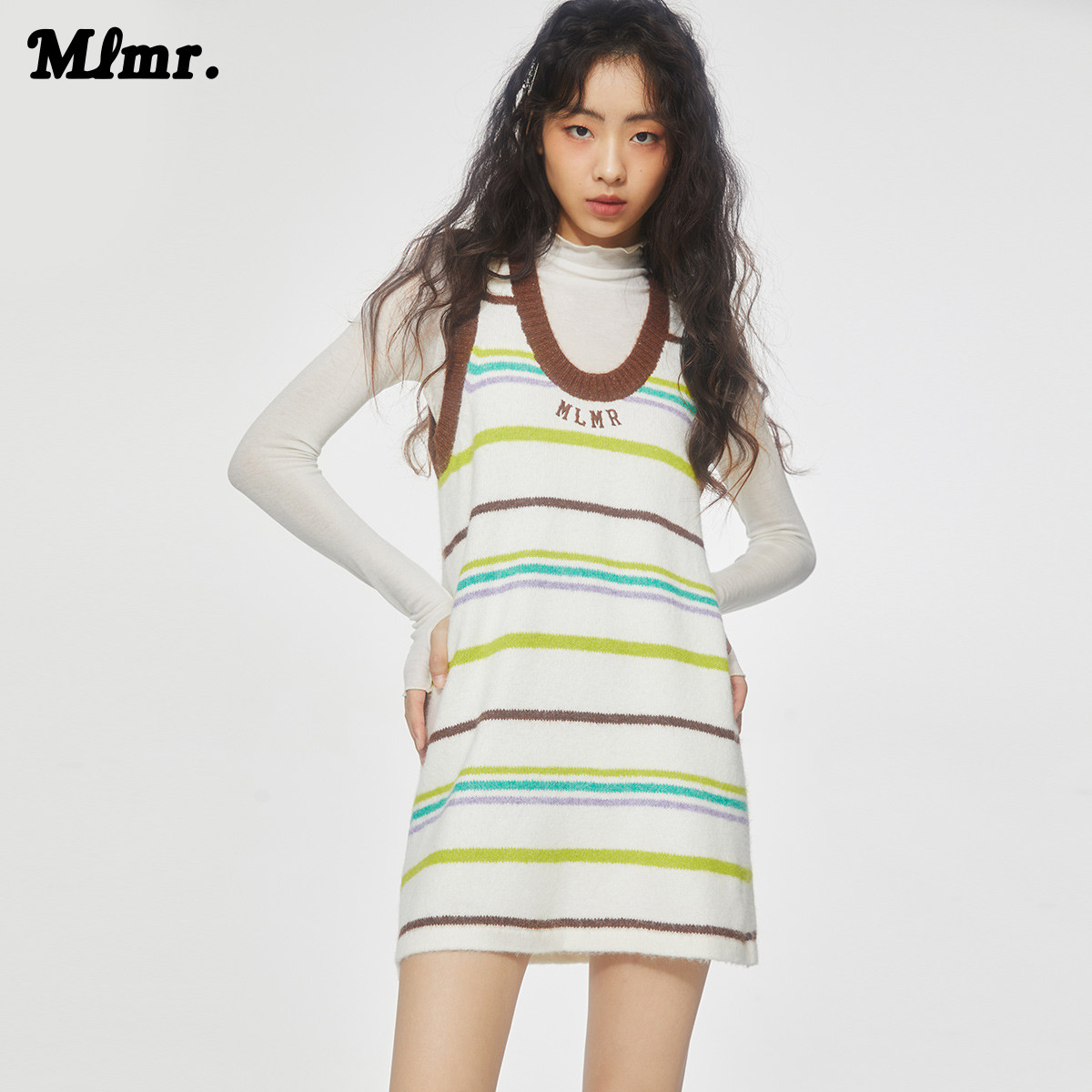 MLMR春夏新款多巴胺穿搭女装长裙背带裙针织撞色条纹复古连衣裙