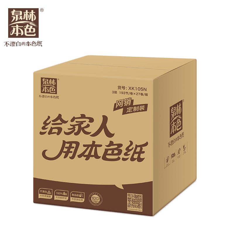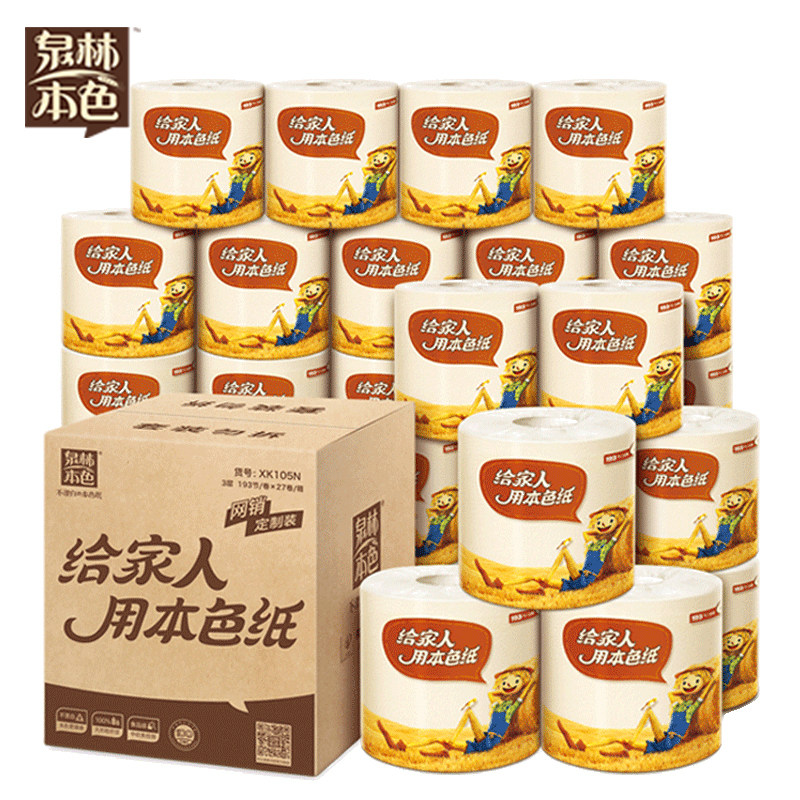 泉林本色卷纸3层193节27卷有芯卷纸家用卫生纸卷筒纸厕纸整箱包邮