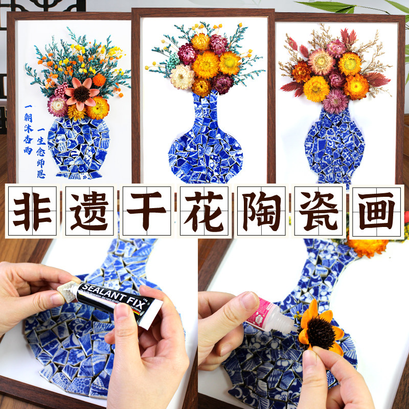 非遗手工青花瓷陶瓷画diy材料包永生干花相框女神节暖场沙龙活动