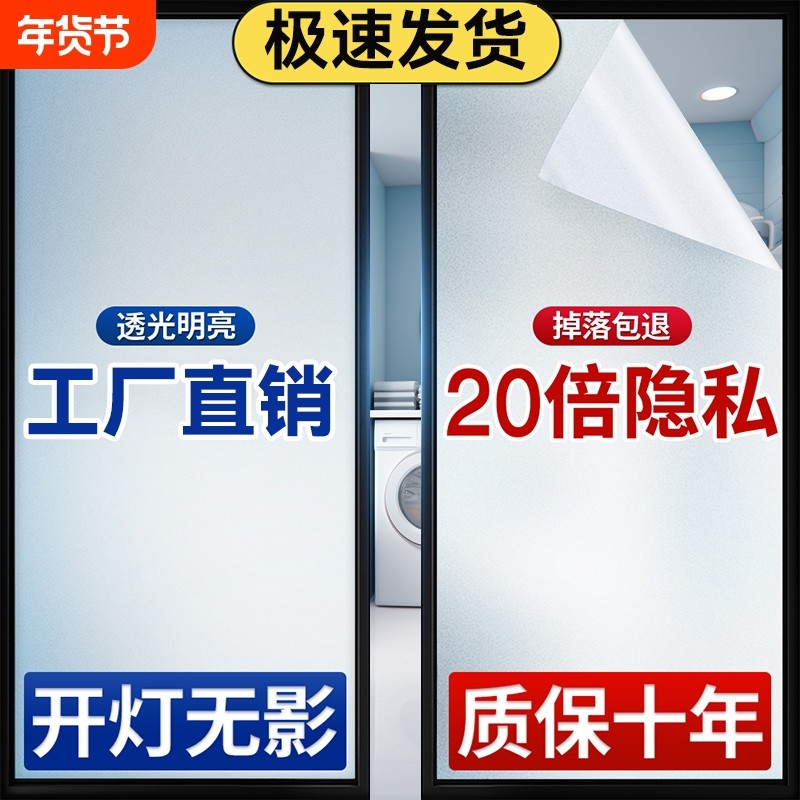 磨砂玻璃贴膜卫生间浴室防走光膜防窥家用窗户透光不透明玻璃贴纸