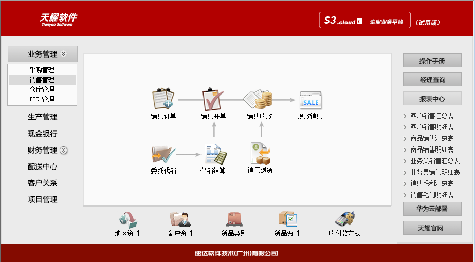 速达天耀s3.cloudC进销存财务报表于一体办公人力资源管理21用户