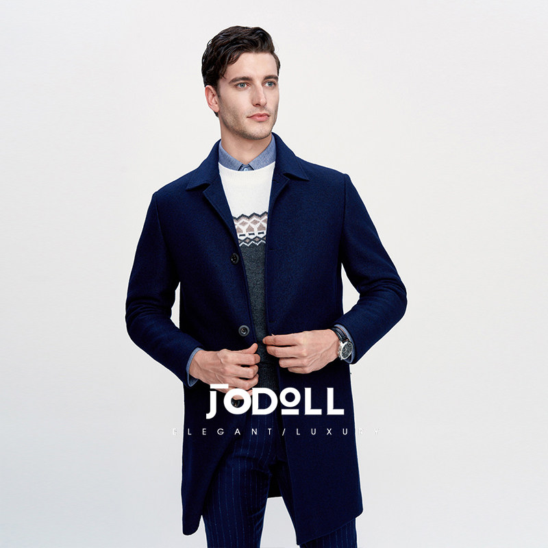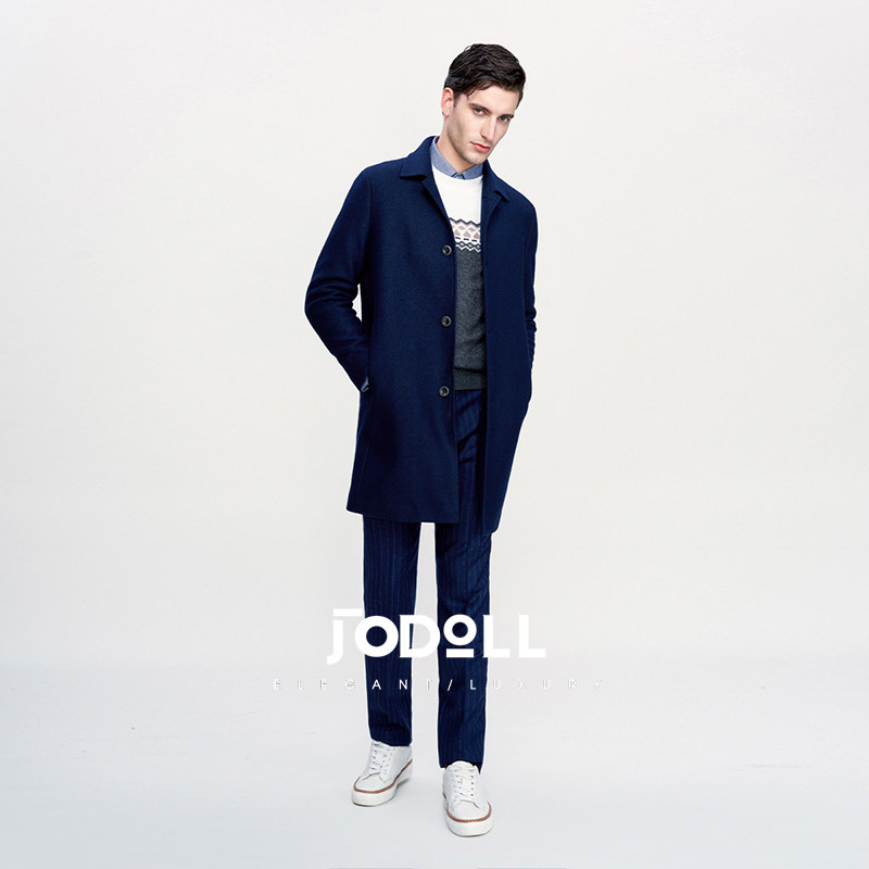 JODOLL乔顿男士羊毛呢大衣冬季英伦风中长款单排扣翻领保暖呢外套