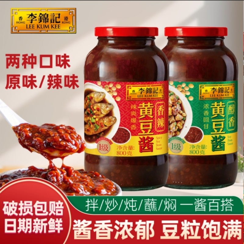 李锦记黄豆酱240g800g瓶装大豆酱东北卷饼拌面酱豆瓣酱豆豉调料