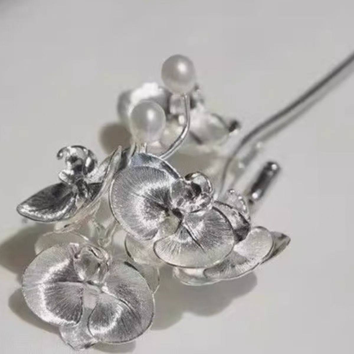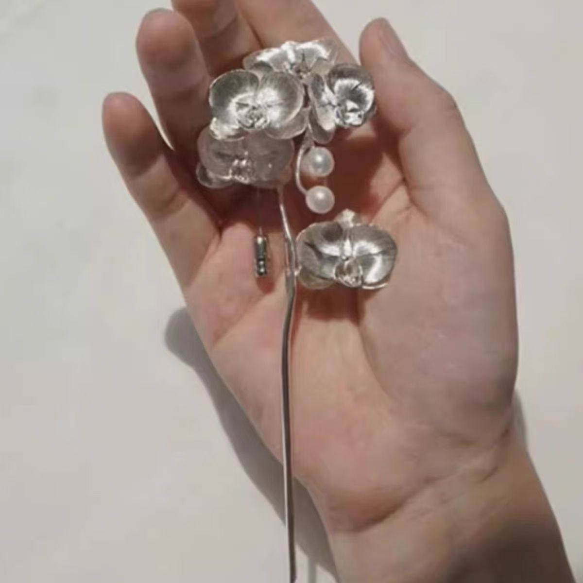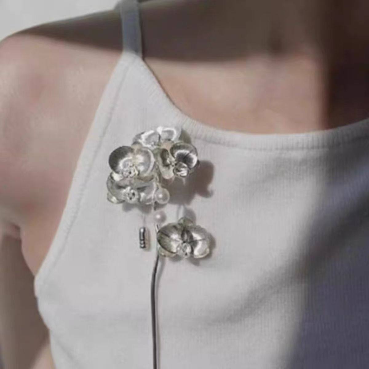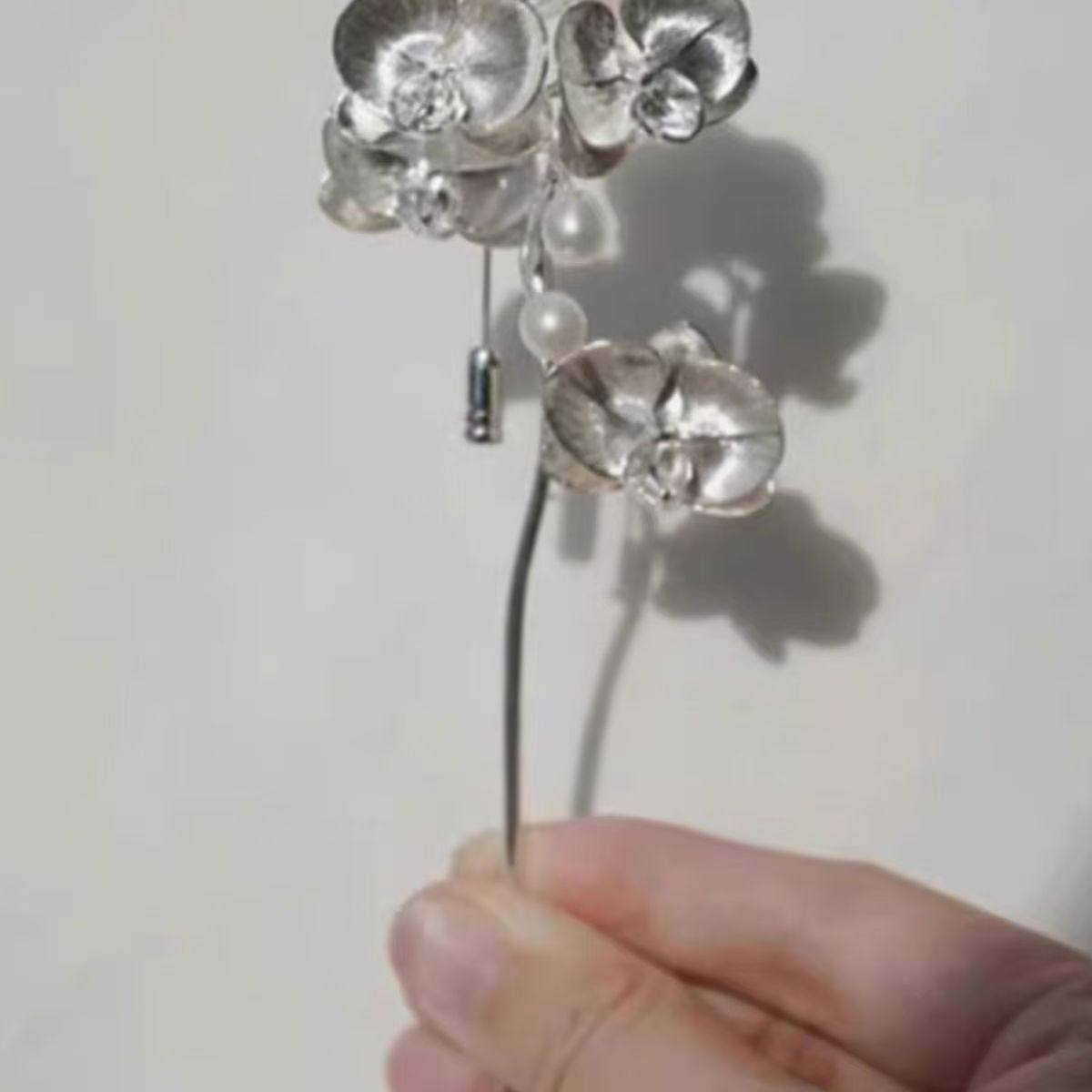 新中式国风钉蝴蝶兰钉珠胸针复古气质简约时尚百搭服装固定胸花