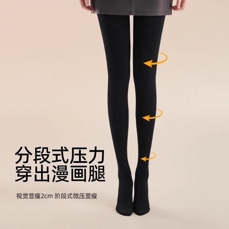 菇娘家黑色连裤袜发热保暖塑形打底裤大码女显瘦微压袜裤秋冬新款