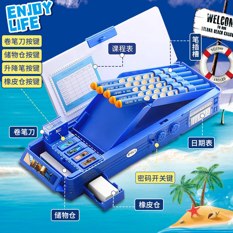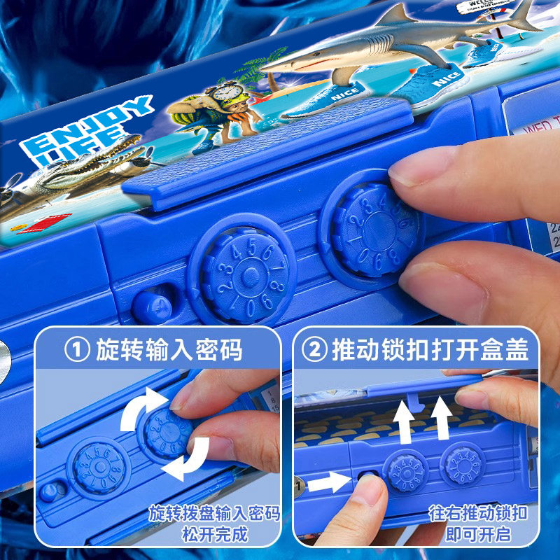 山海经密码锁文具盒鲨鱼卡皮巴拉男生女孩款2025多功能铅笔盒大容量女生新款儿童学霸笔盒男孩小学生文具笔袋
