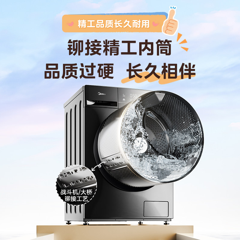 美的滚筒洗衣机家用全自动10公斤大容量洗脱一体MG100V36T