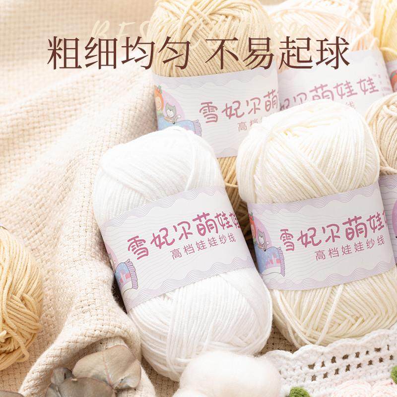 四股牛奶棉雪妃尔萌娃娃线手工diy编织宝宝包包毛衣钩针勾4股毛线