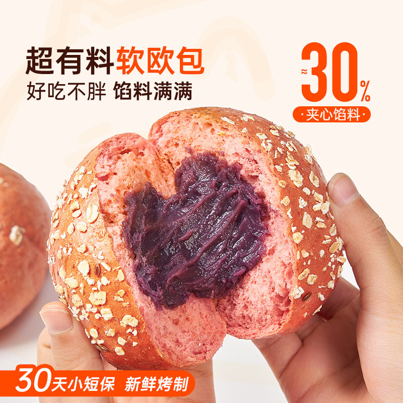 全麦欧包低脂早餐无油代餐饱腹零食品夹心整箱面包紫米红豆食物