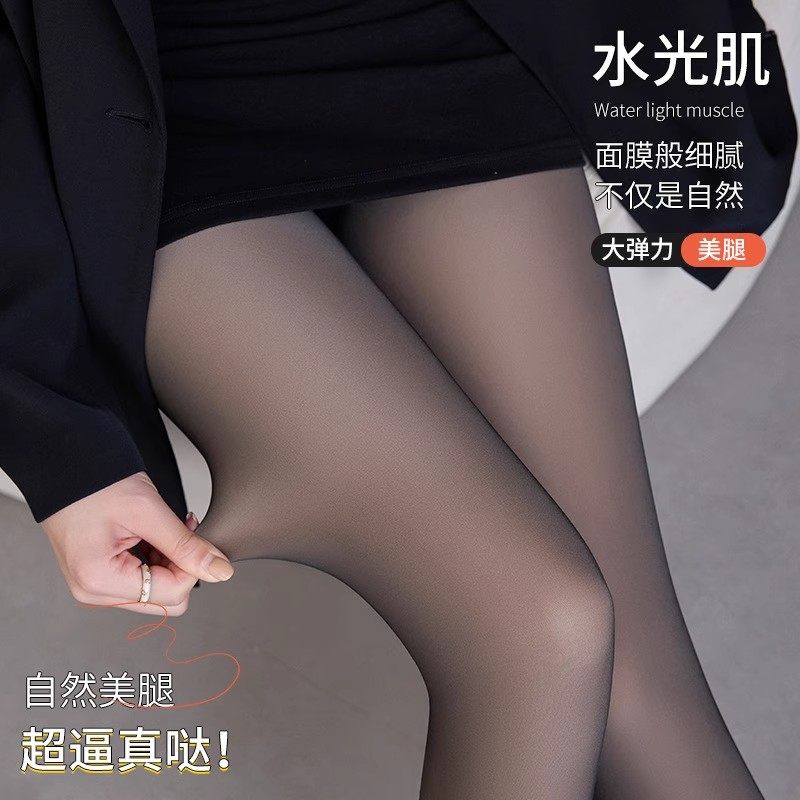黑透肤光腿神器女秋冬季裸感打底裤一体无缝加绒假透肉连裤袜水光