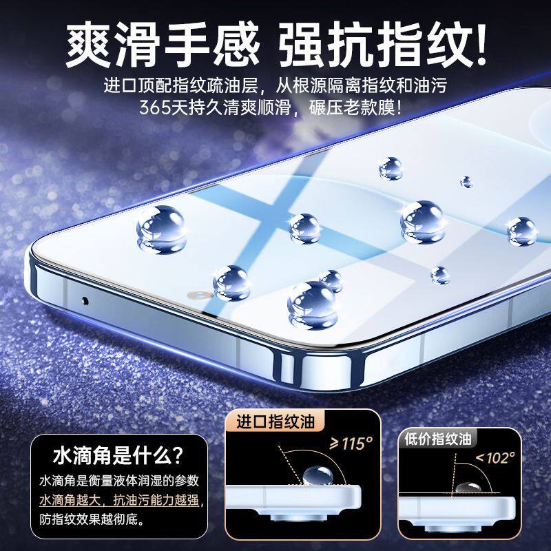 [不沾指纹]适用iPhone17/16钢化膜苹果15/14手机13promax防窥12全屏XR/xsmax全包11贴X防摔8por高清plus