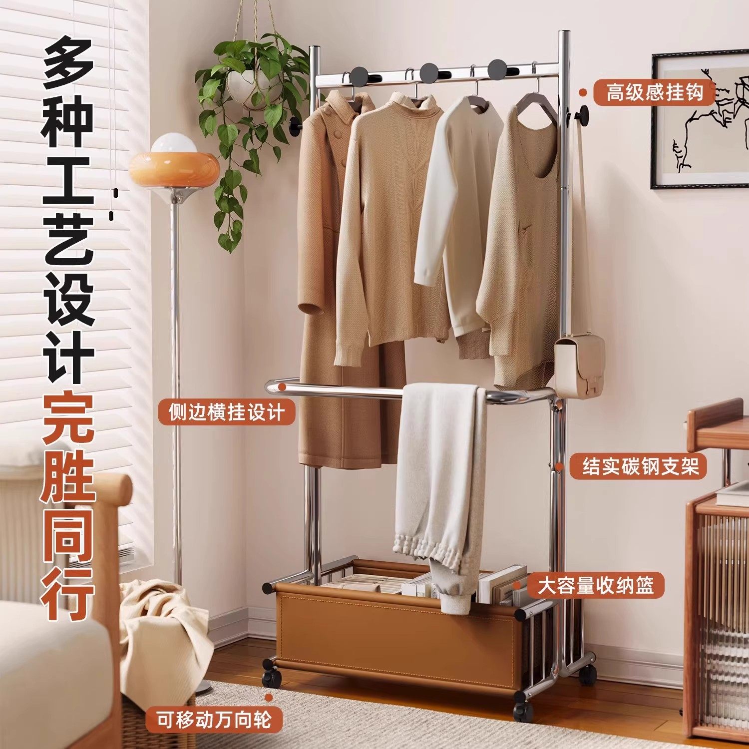 衣架卧室落地家用衣帽架铁艺晾晒衣架子高级室内立式可移动挂衣架