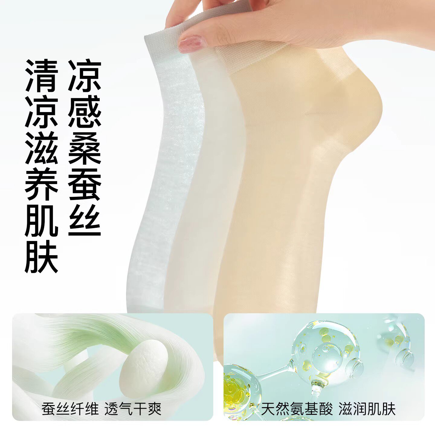 桑蚕丝袜子女夏季薄款短袜吸汗透气防臭袜夏天10A抗菌防臭中筒袜