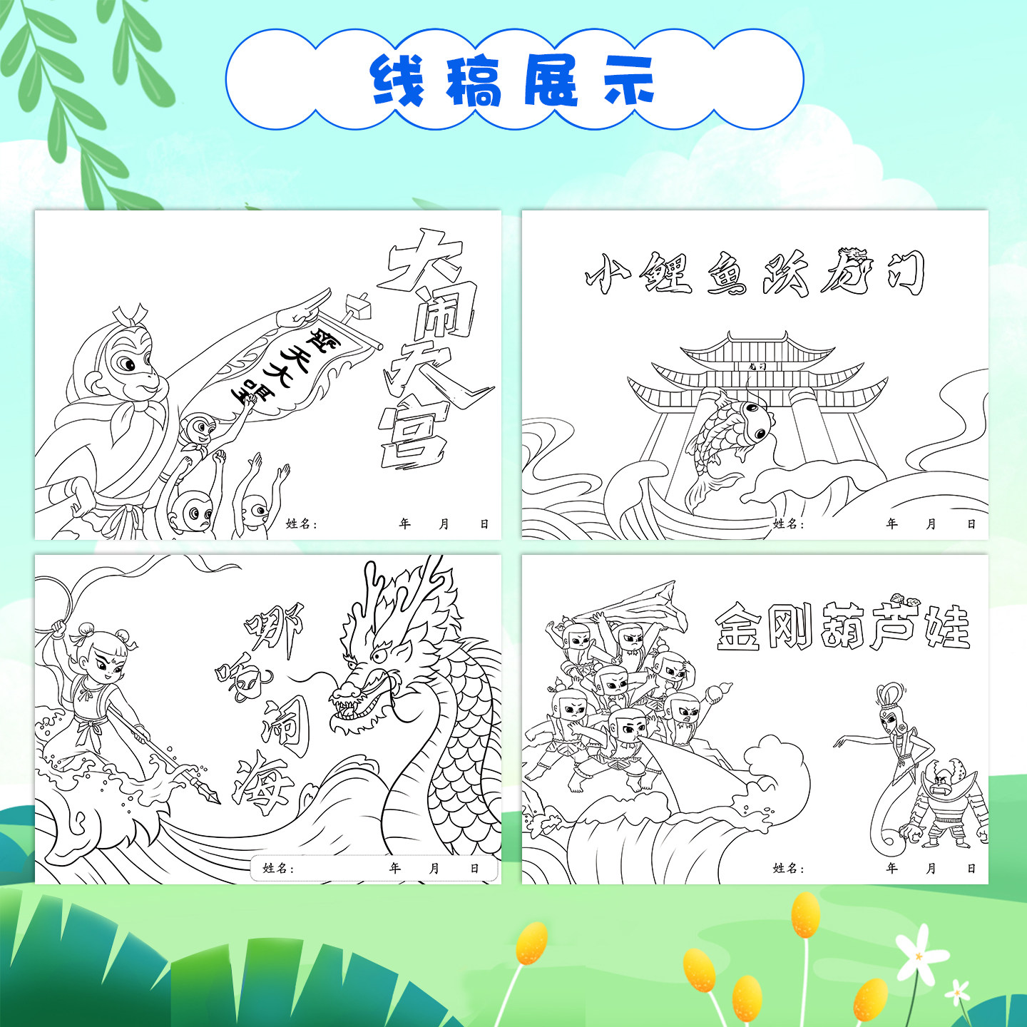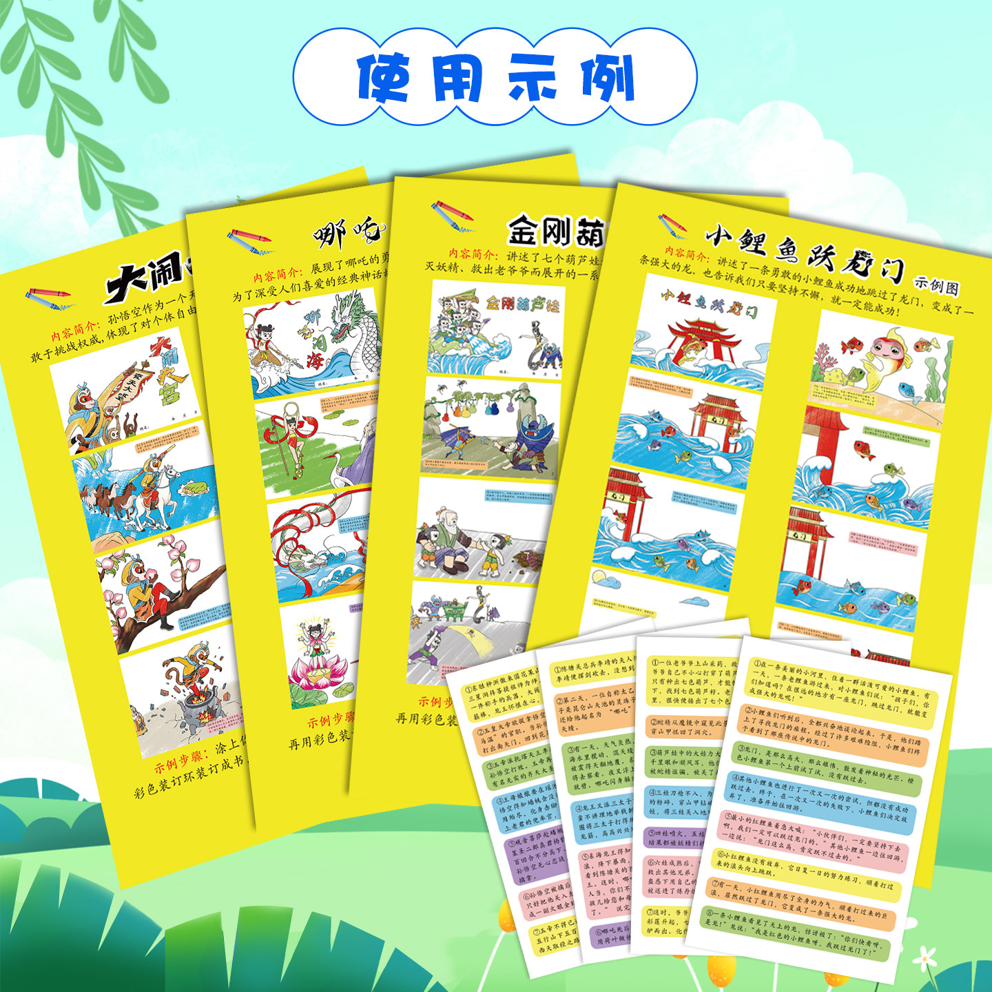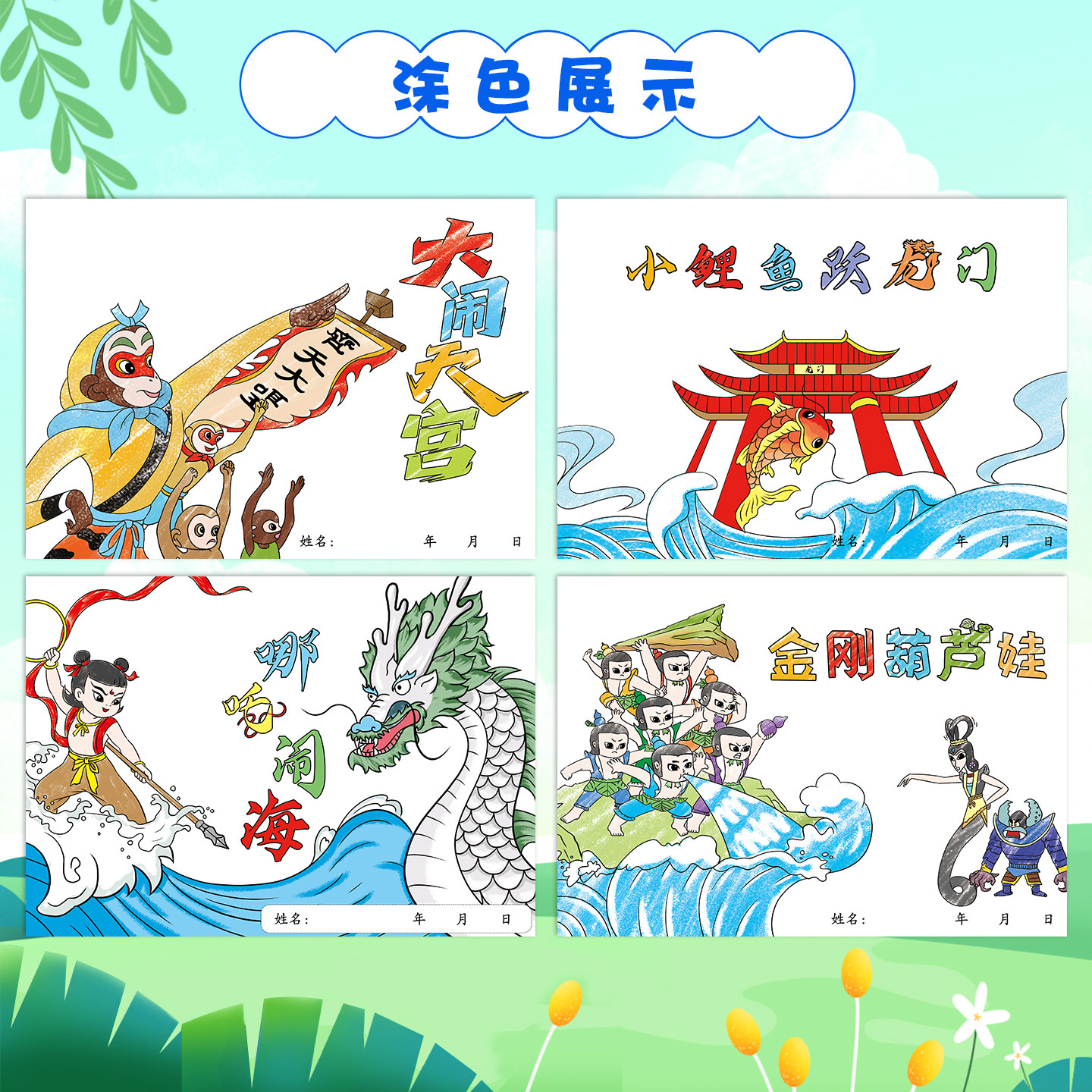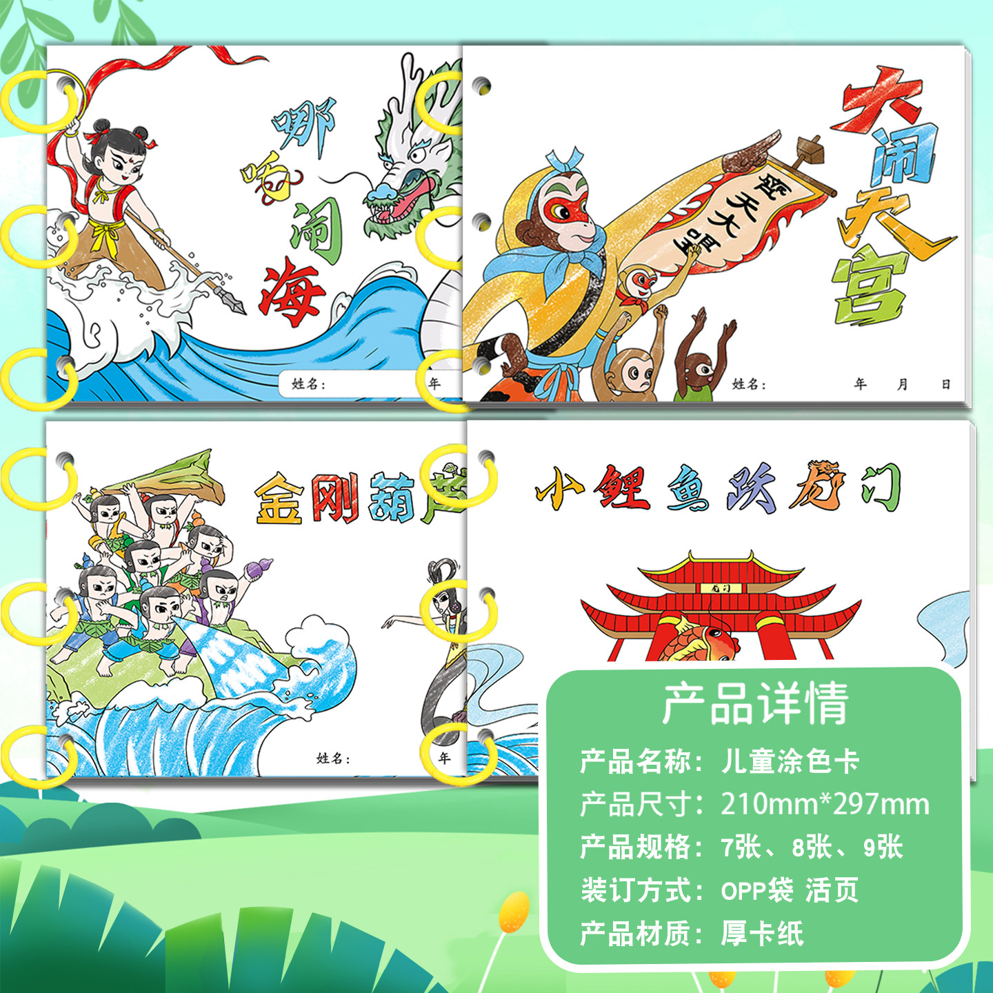 幼儿园自制手工绘画本儿童亲子创意涂鸦填色绘画启蒙故事书涂色卡大闹天宫哪吒闹海金刚葫芦娃小鲤鱼跃龙门