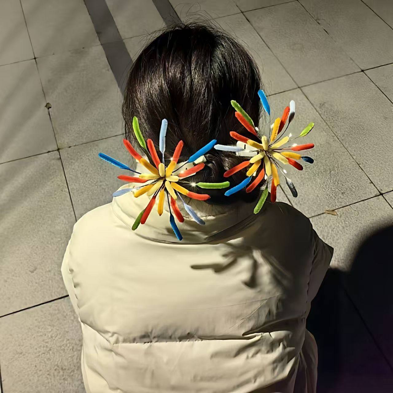 烟花发夹创意扭扭棒diy头饰品2026新年跨年元旦出片拍照氛围发饰