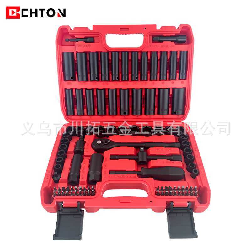 95件套72齿3/8公英制气动棘轮扳手套筒组套家用修车工具套装中飞