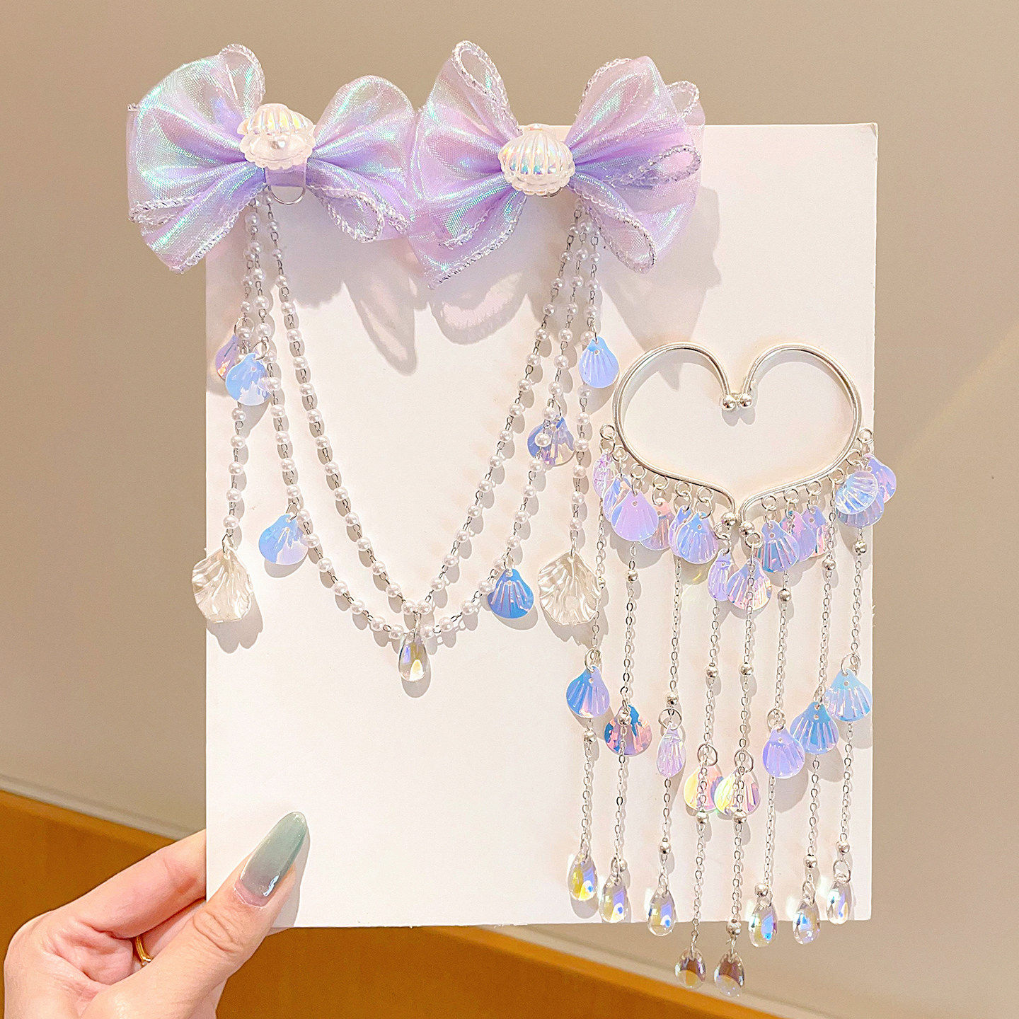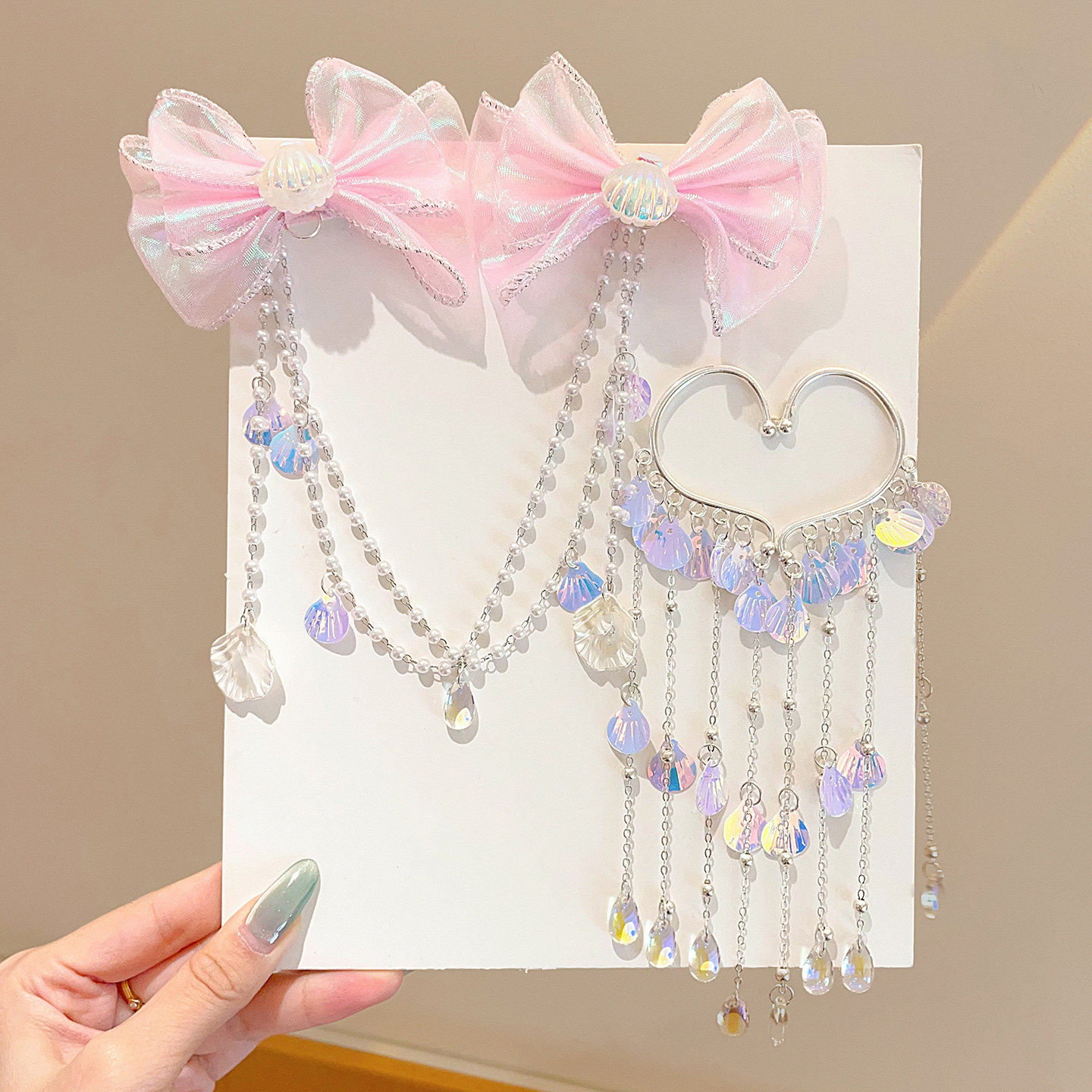 儿童额头链古风项链女童人鱼公主耳饰发饰汉服头饰古装流苏链贝壳
