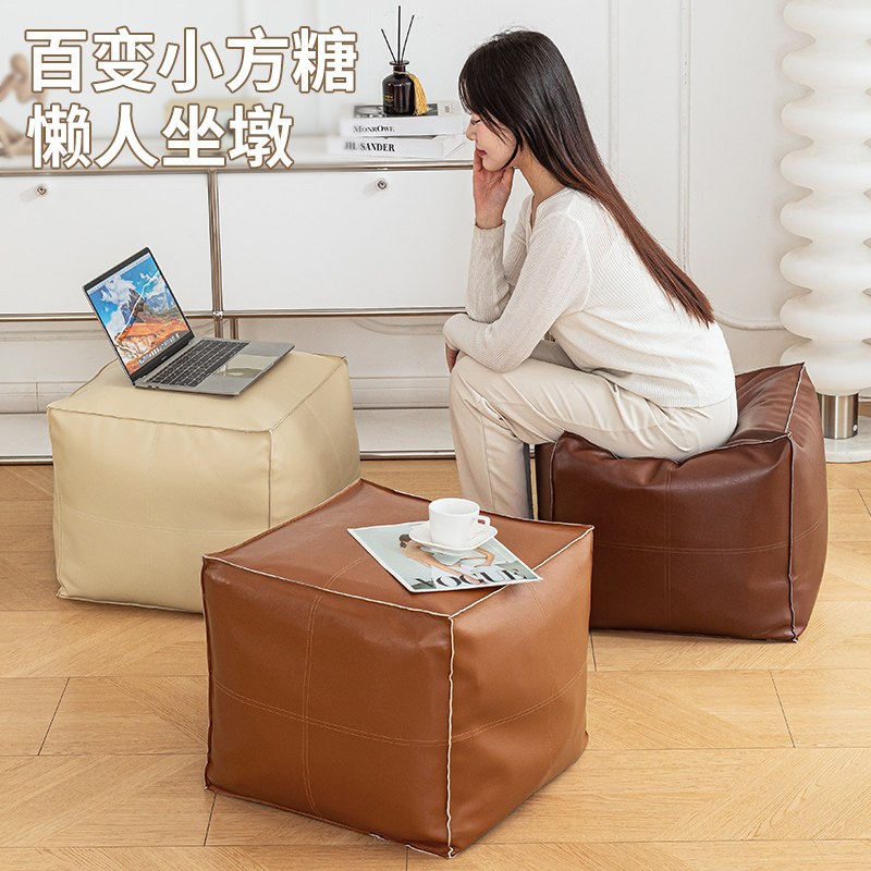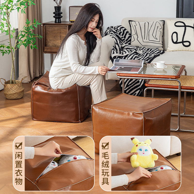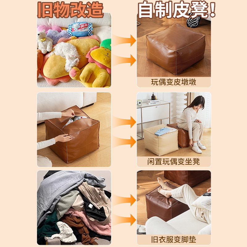轻奢皮墩子客厅沙发凳坐垫手工脚踏换鞋矮凳家用旧衣物收纳软凳
