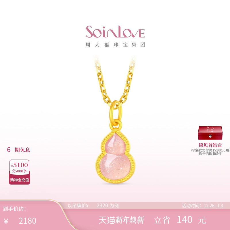 周大福SOINLOVE蜜粉金十里红妆粉色福禄黄金葫芦吊坠生日礼物
