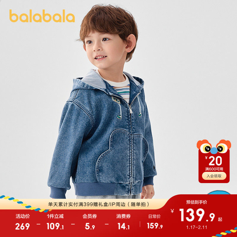巴拉巴拉童装儿童外套男童春秋装牛仔宽松连帽上衣趣味印花便衣