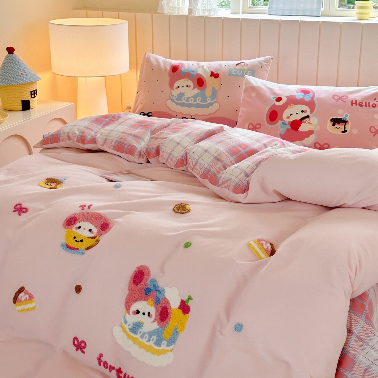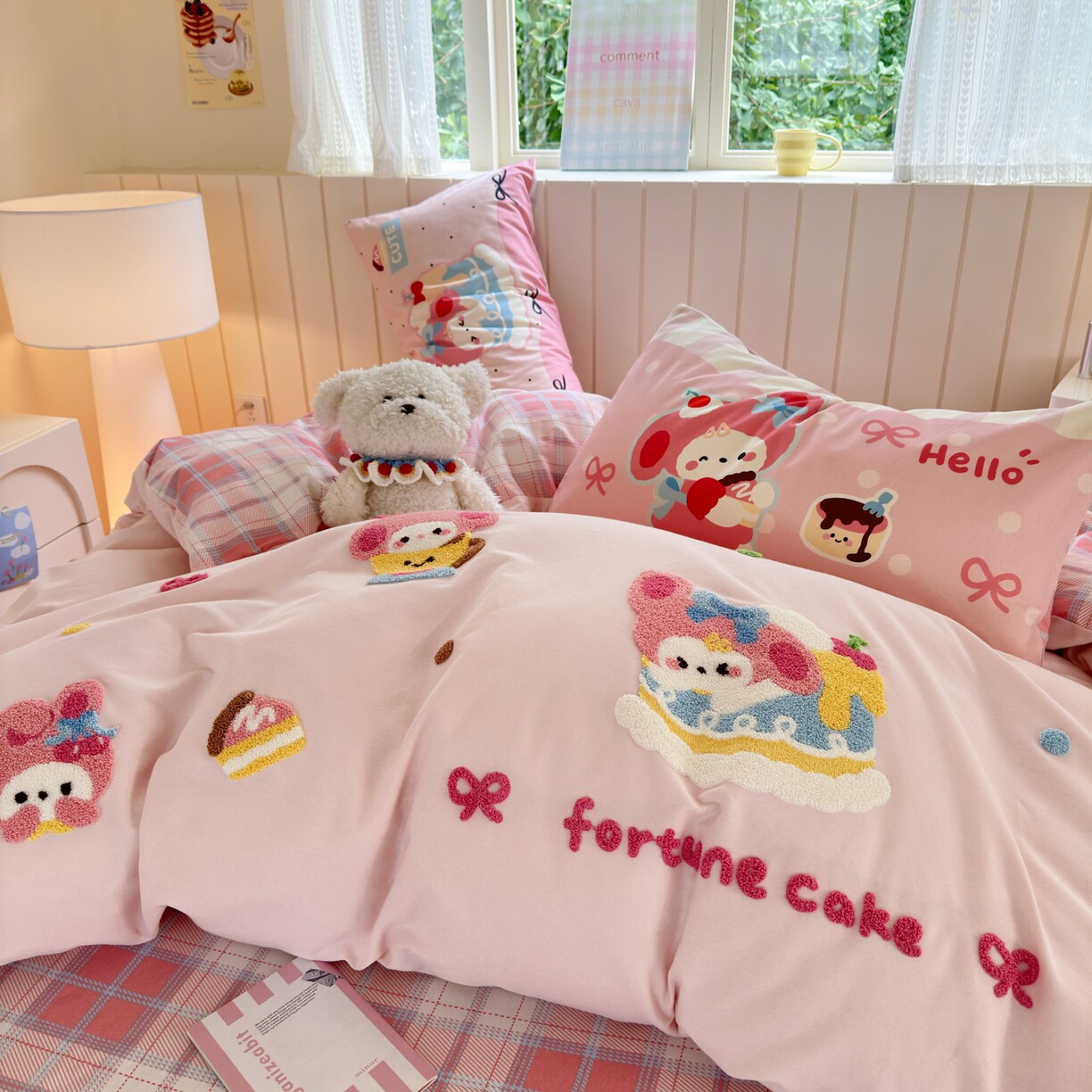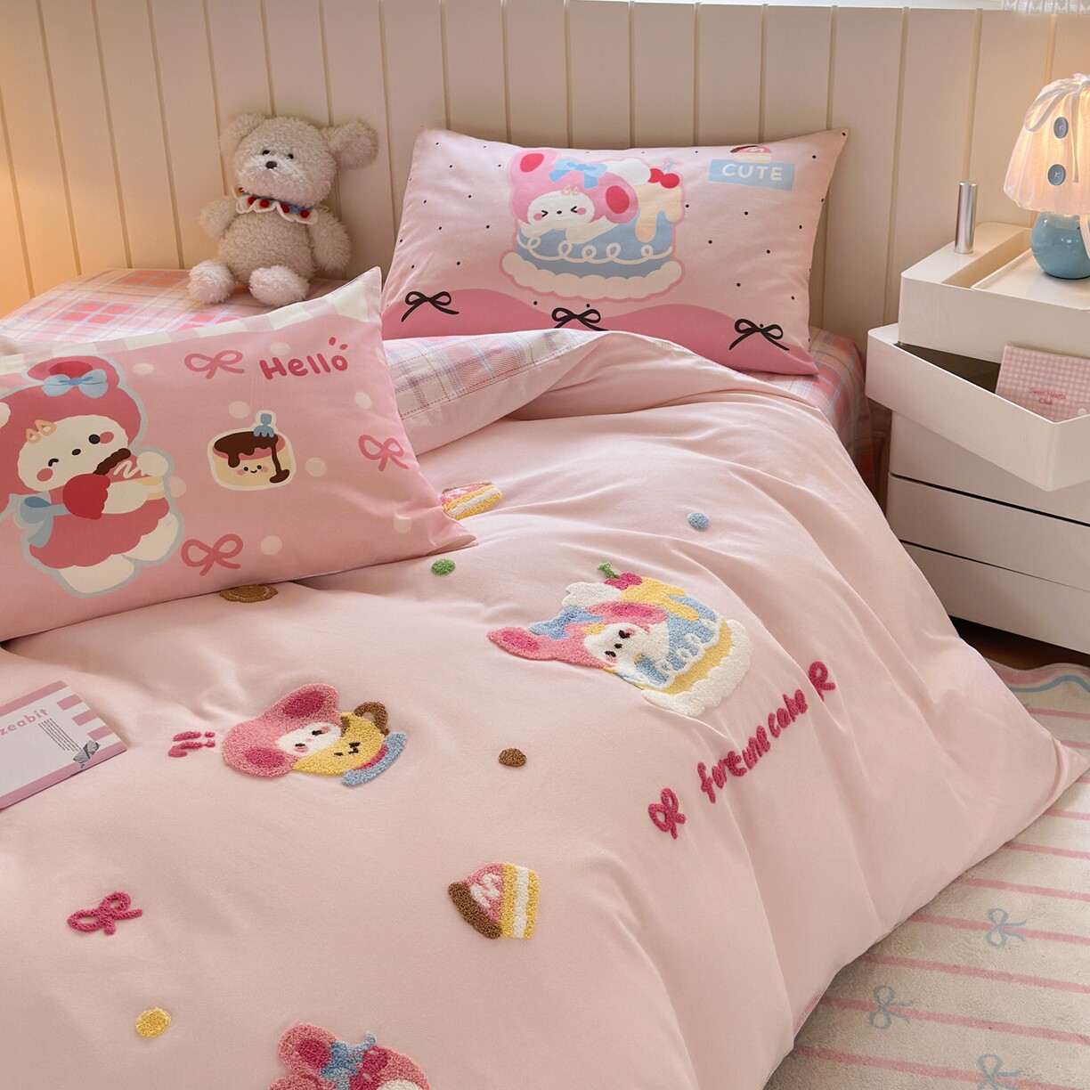 数码印花全棉磨毛毛巾绣四件套纯棉可爱卡通小熊蛋糕床品套件绣花